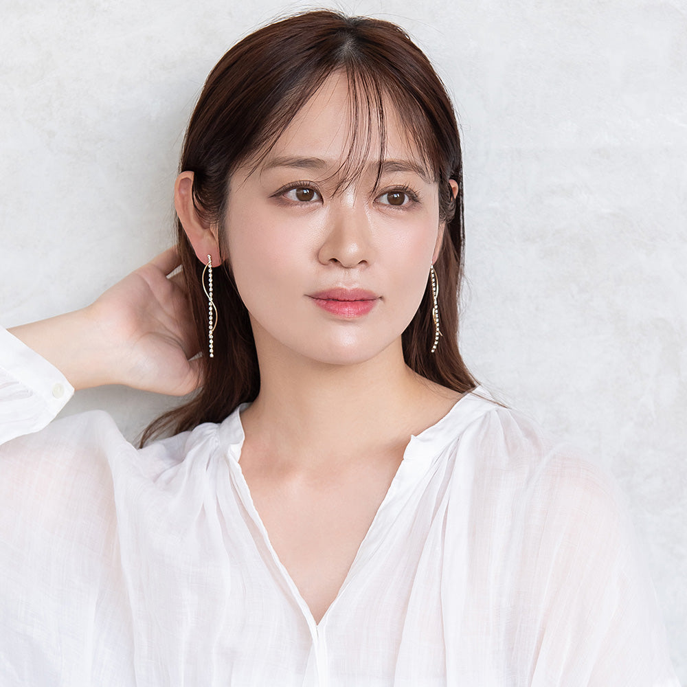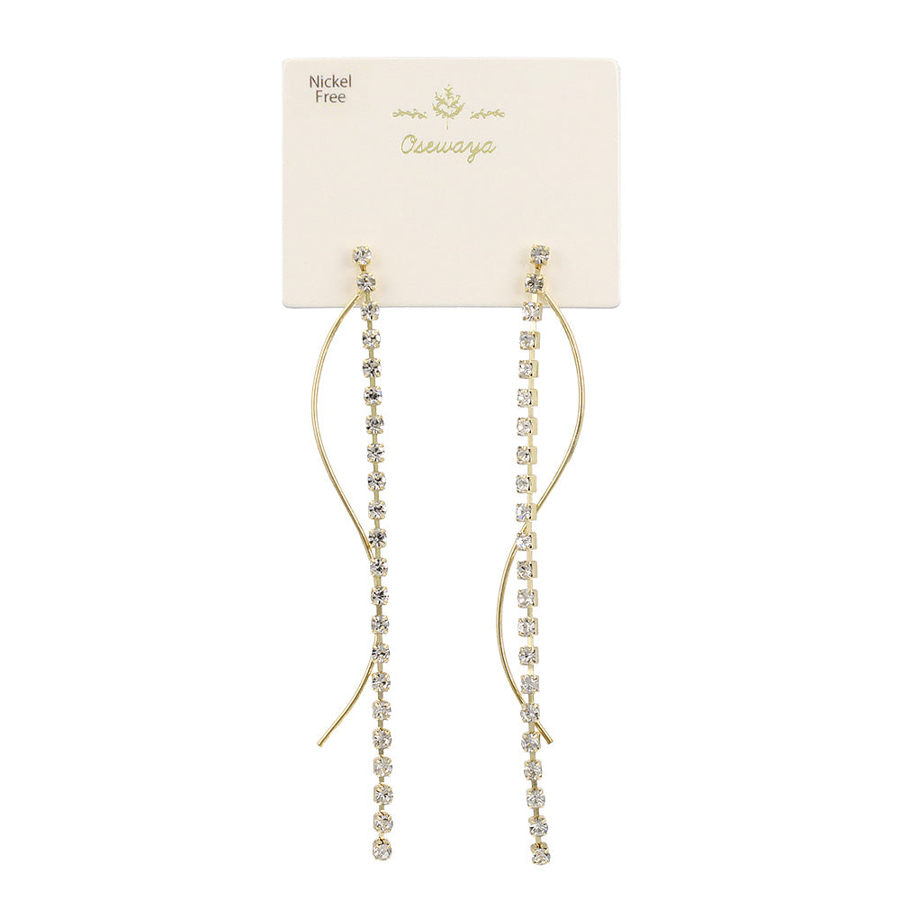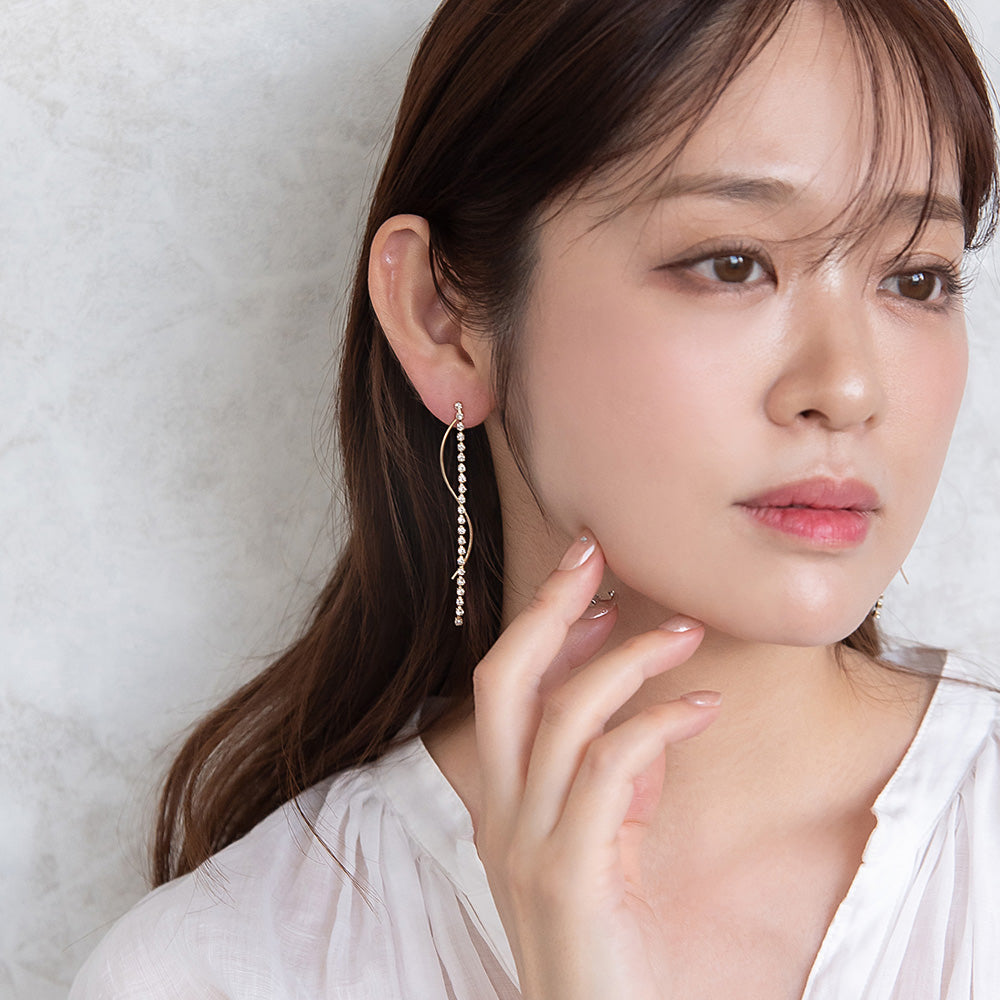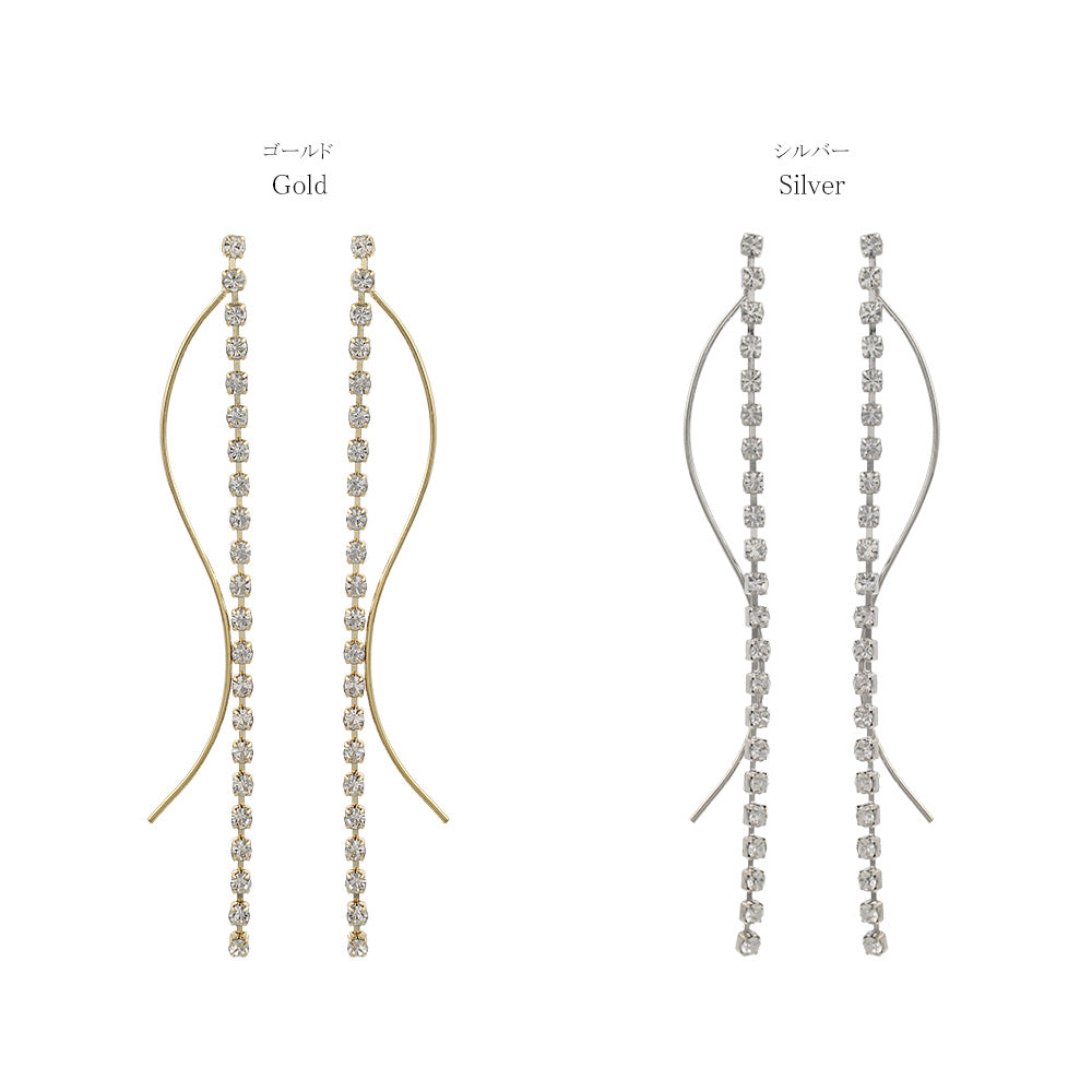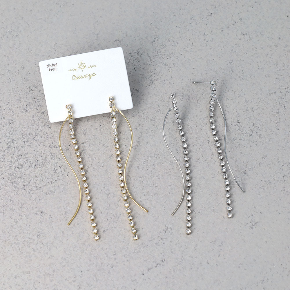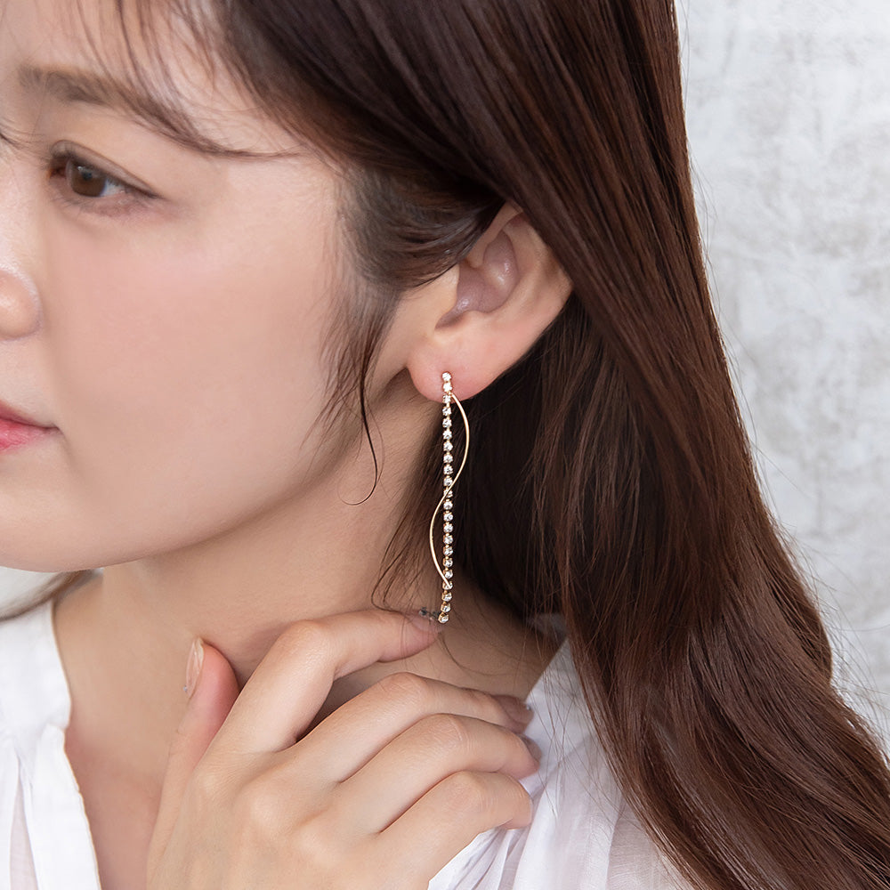 ピアス ニッケルフリー メタル ウェーブライン ストーン スタッドピアス
