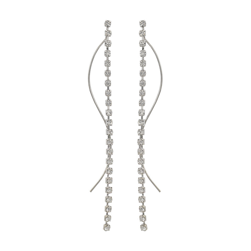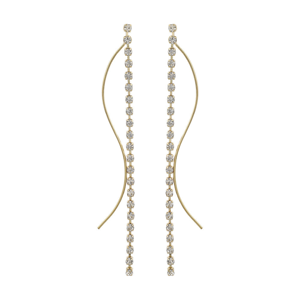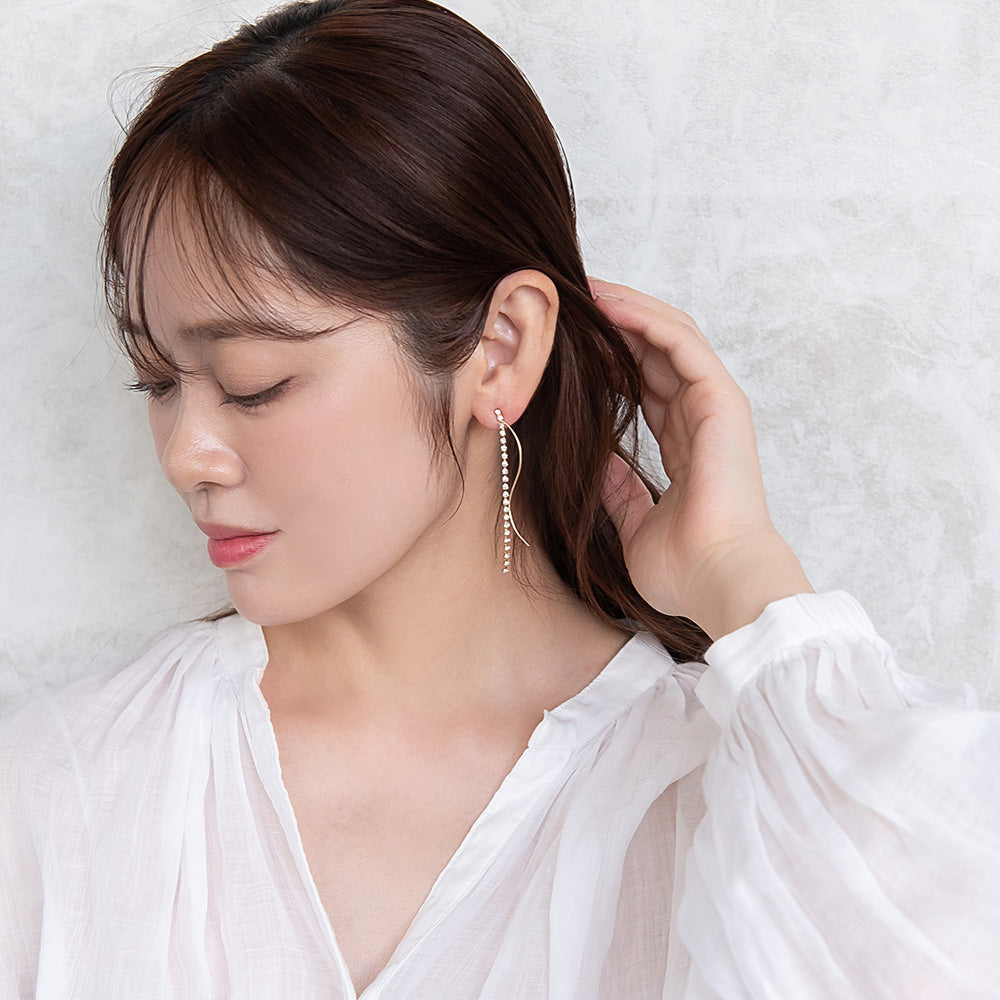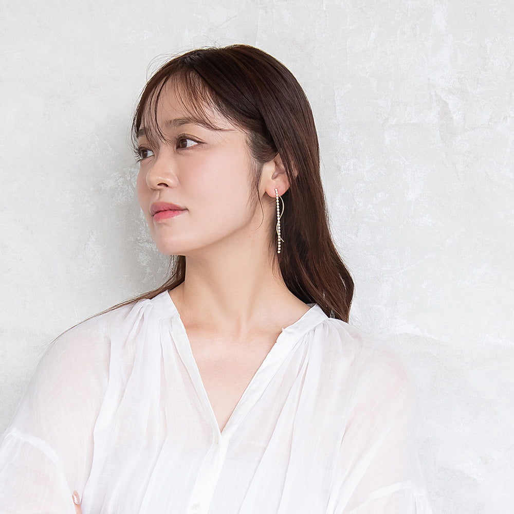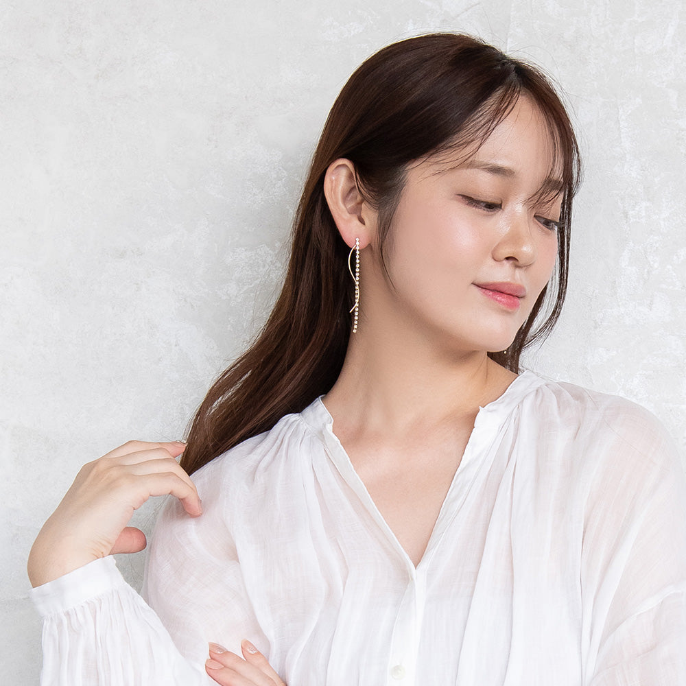 pc2131大人なこなれ感を演出する下がりデザインのガラスストーンxメタルのピアス。