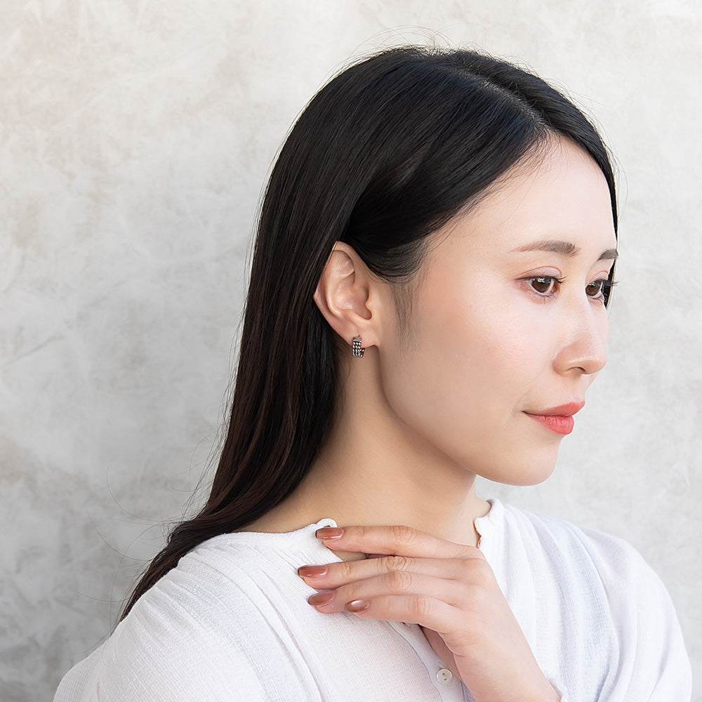 硬く傷がつきにくいステンレス製のアクセサリーです。サビや変色にも強い素材の為、なめらかな質感、輝きを長く保ちます。金属アレルギーの方にも安心してご使用いただけます。