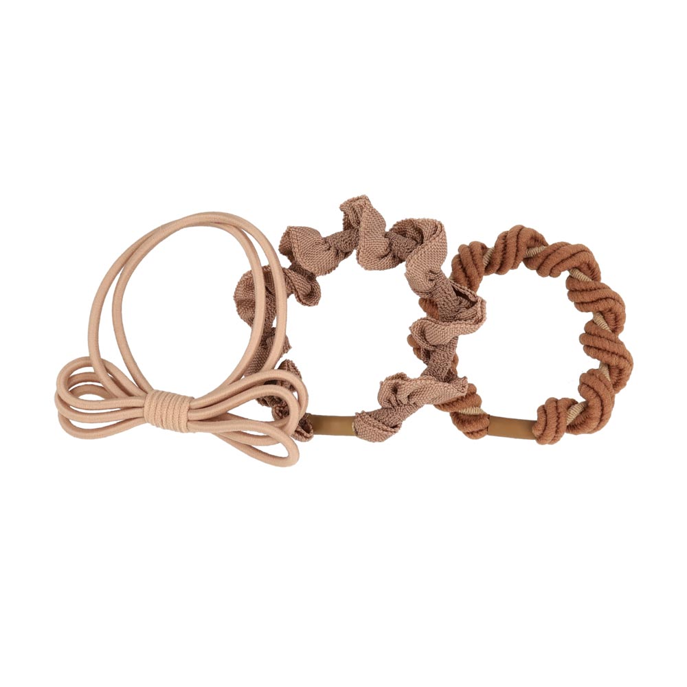 さりげなくもシェイプの効いた、センス良さげなマルチデザインのセットのヘアゴムは、ちいさめ直径で使いやすいサイズ感。アレンジの幅が広がる万能アイテム。お出かけにも、お家でも◎親子でお揃いや兼用も◎