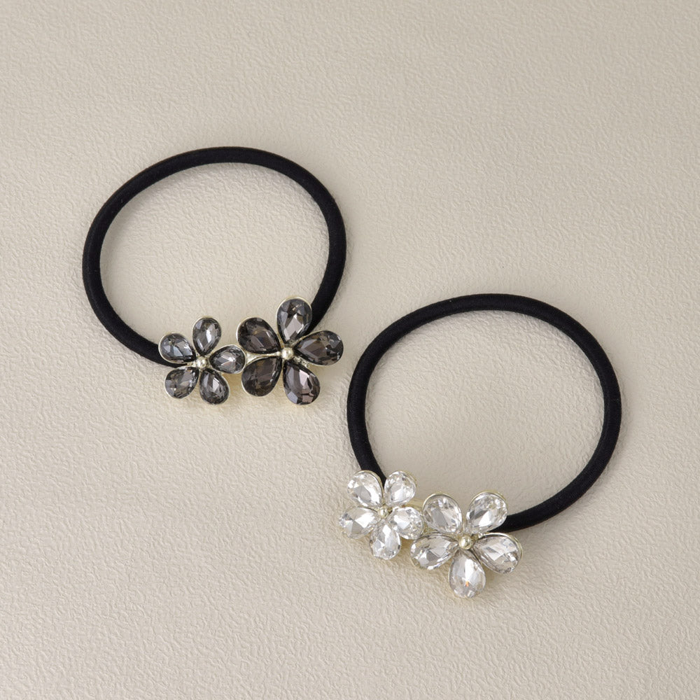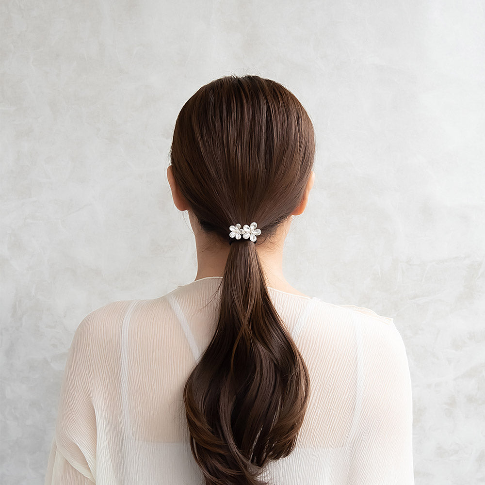 ヘアゴム ストーン クリア カラー フラワー 花 ダブル ビジュー メタル ヘアポニー