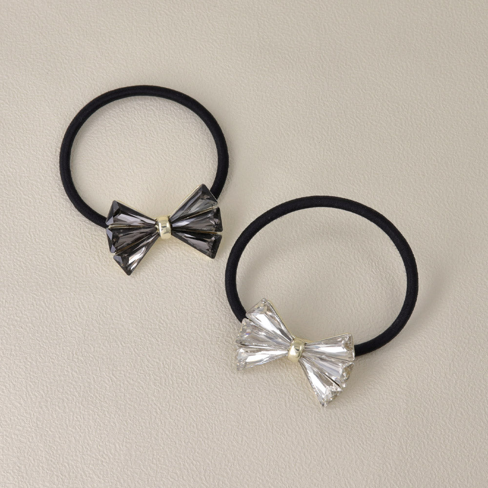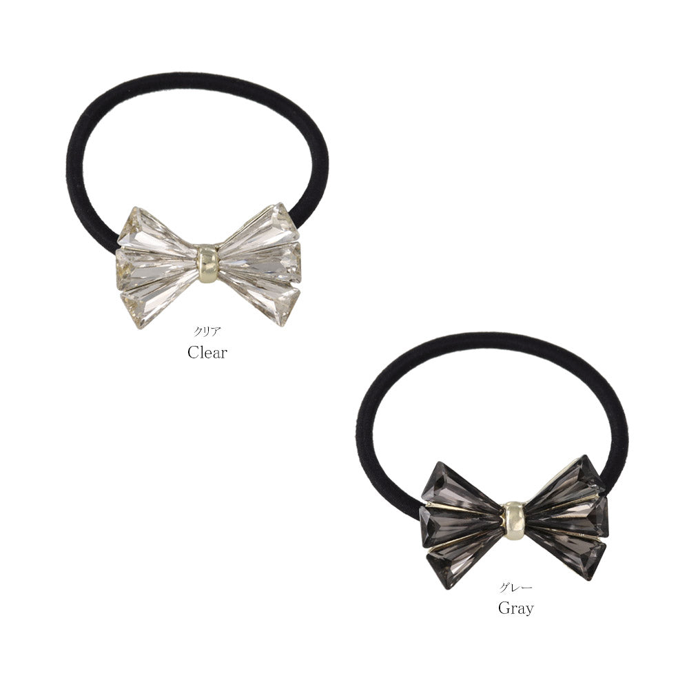 ヘアゴム ストーン クリア カラー リボン ビジュー メタル ヘアポニー