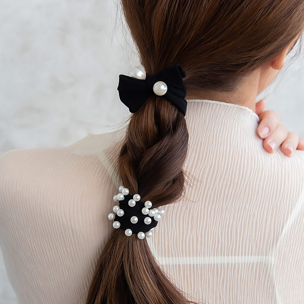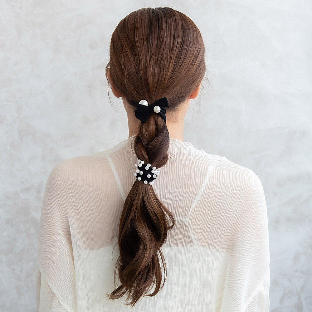 コーディネートに合わせて好きな色や形をセレクト。いくつかの結び目をつくることで、アレンジが楽しめるヘアゴムのセット。
