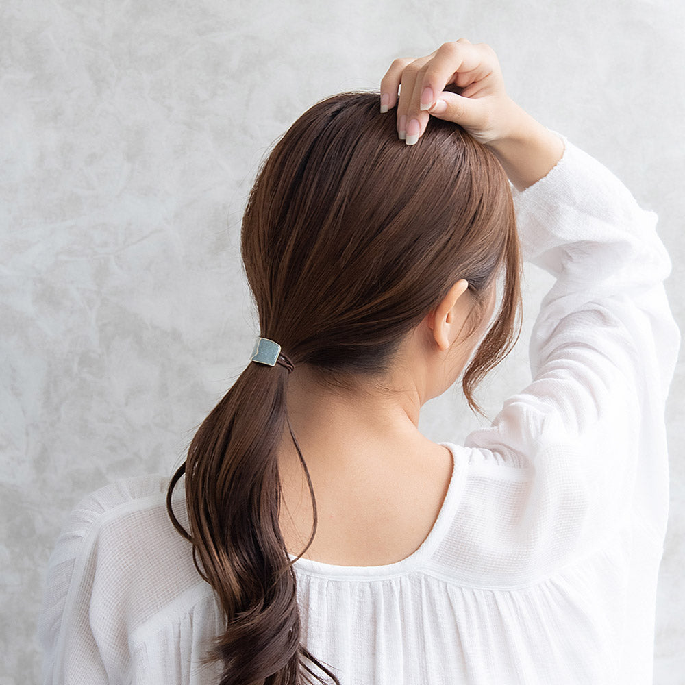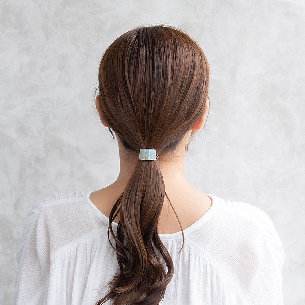 ヘアゴム mini pony メタル マーブル カラー ラメ ハーフ レクタングル ウェーブ ライン カーブ ヘアポニー