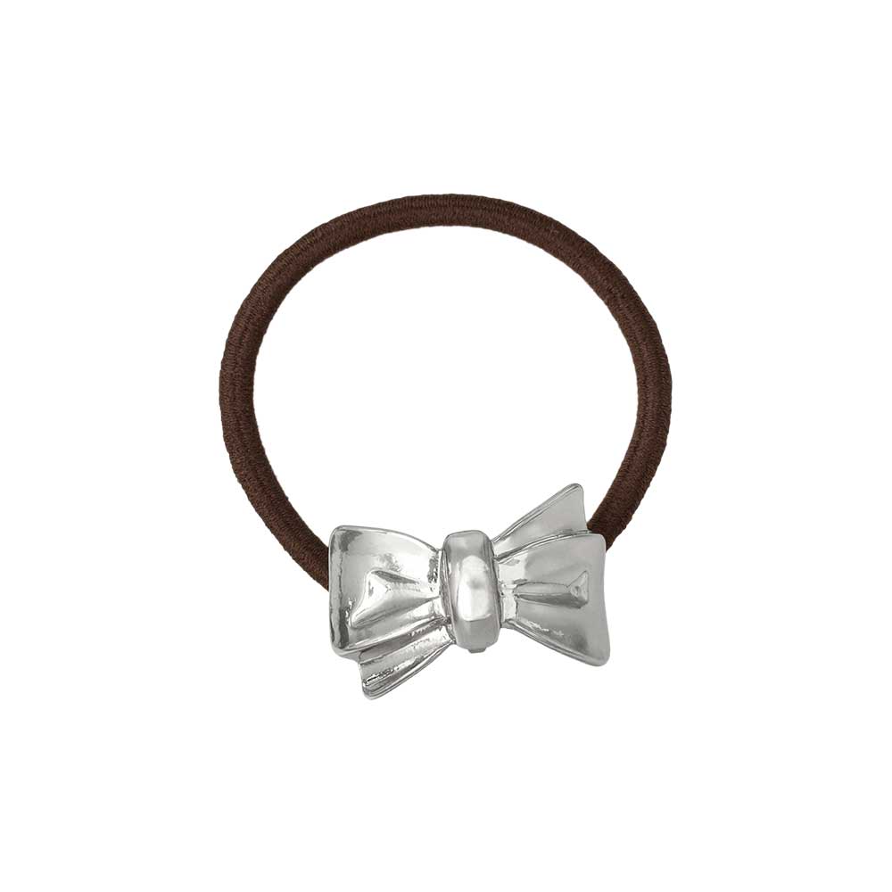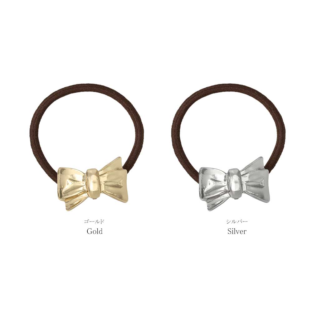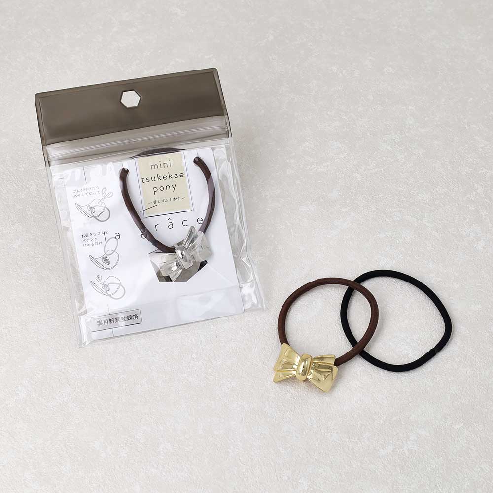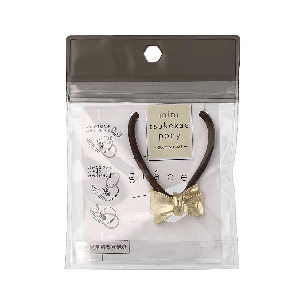 ヘアゴム mini tsukekae pony メタル ミニ リボン ヘアゴム2本付き(ブラウン/ブラック)