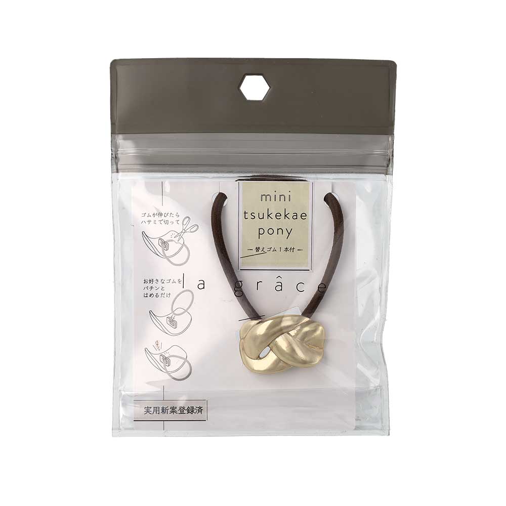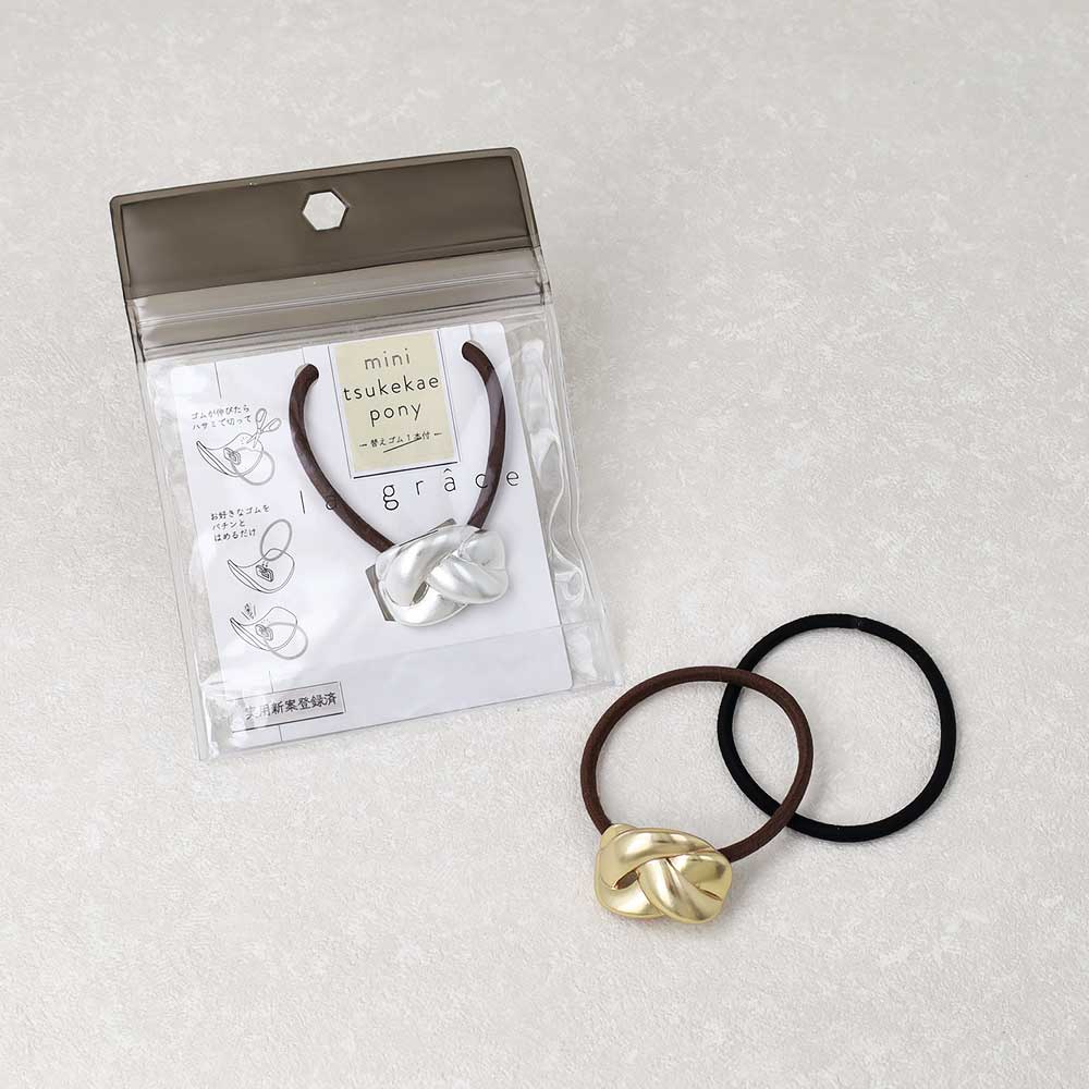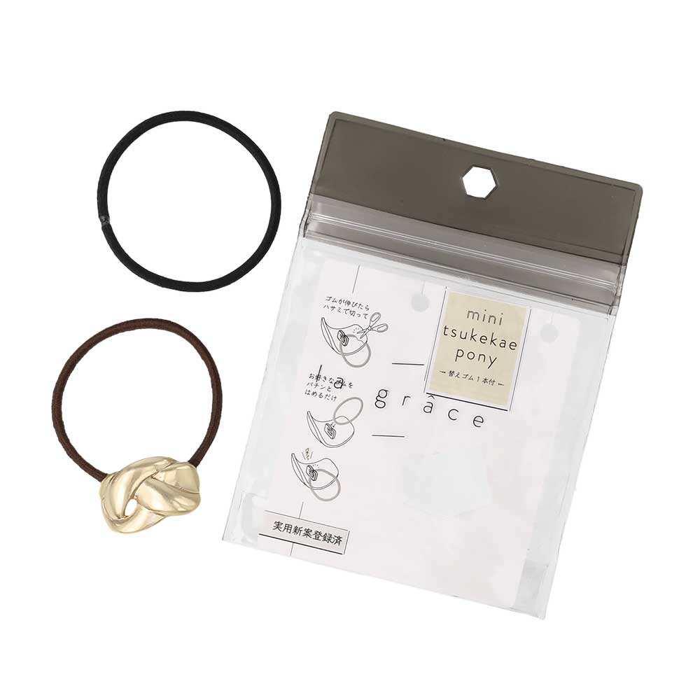 ヘアゴム mini tsukekae pony メタル ミニ 編み込み ヘアゴム2本付き(ブラウン/ブラック)