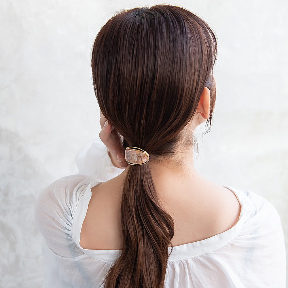 ヘアゴム tsukekae pony メタルフレーム マーブル ヘアゴム2本付き(ブラウン/ブラック)