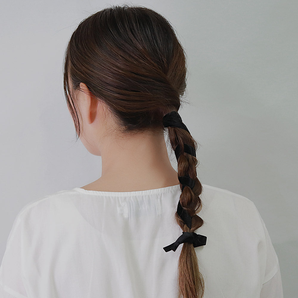 pn0720様々なアレンジが楽しめる黒ベロアのリボンテープ。テイストを選ばない定番のブラックで、アジュアルからフォーマルまで様々なコーディネートを楽しめます。リボン結びや編み込み、ぐるぐると髪に巻くだけでセルフで簡単にアレンジ可能。