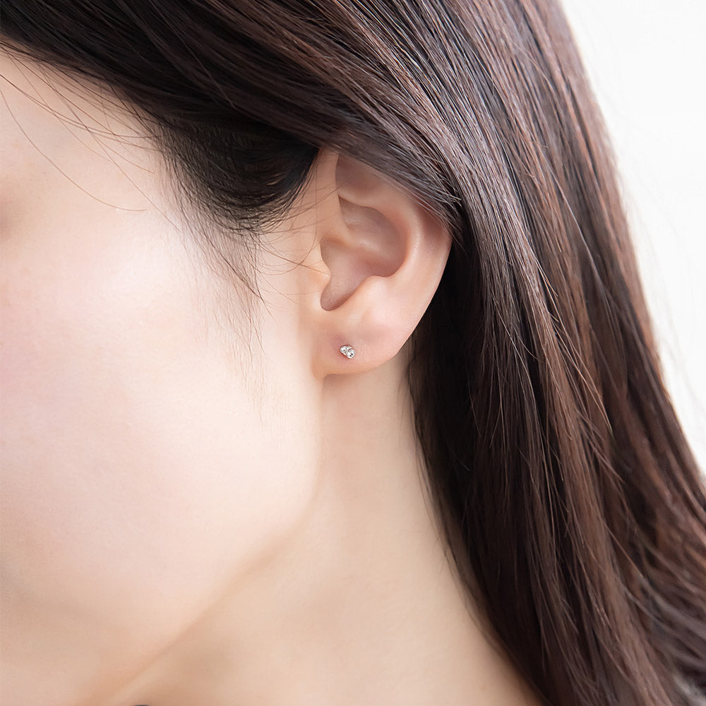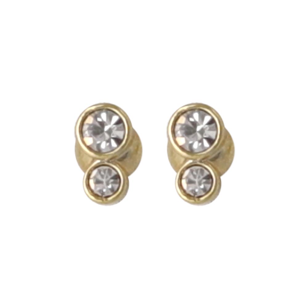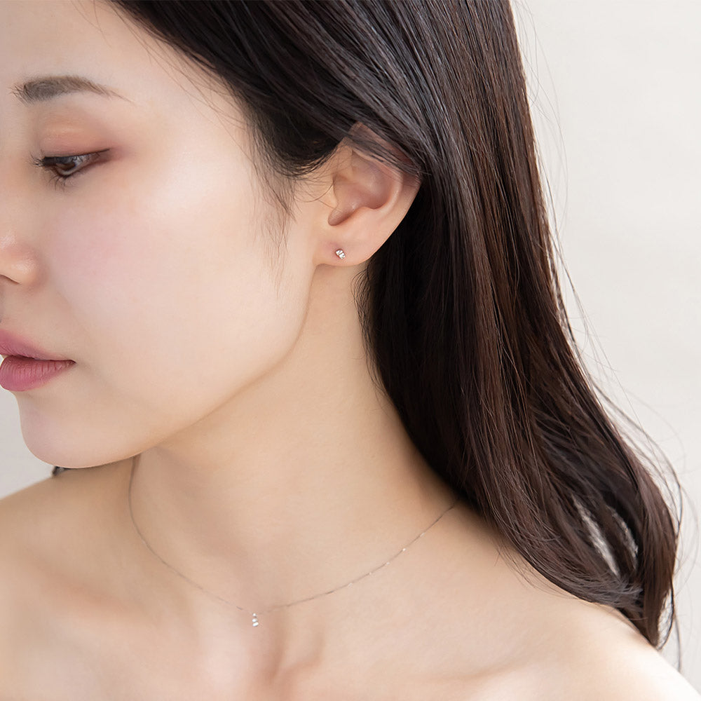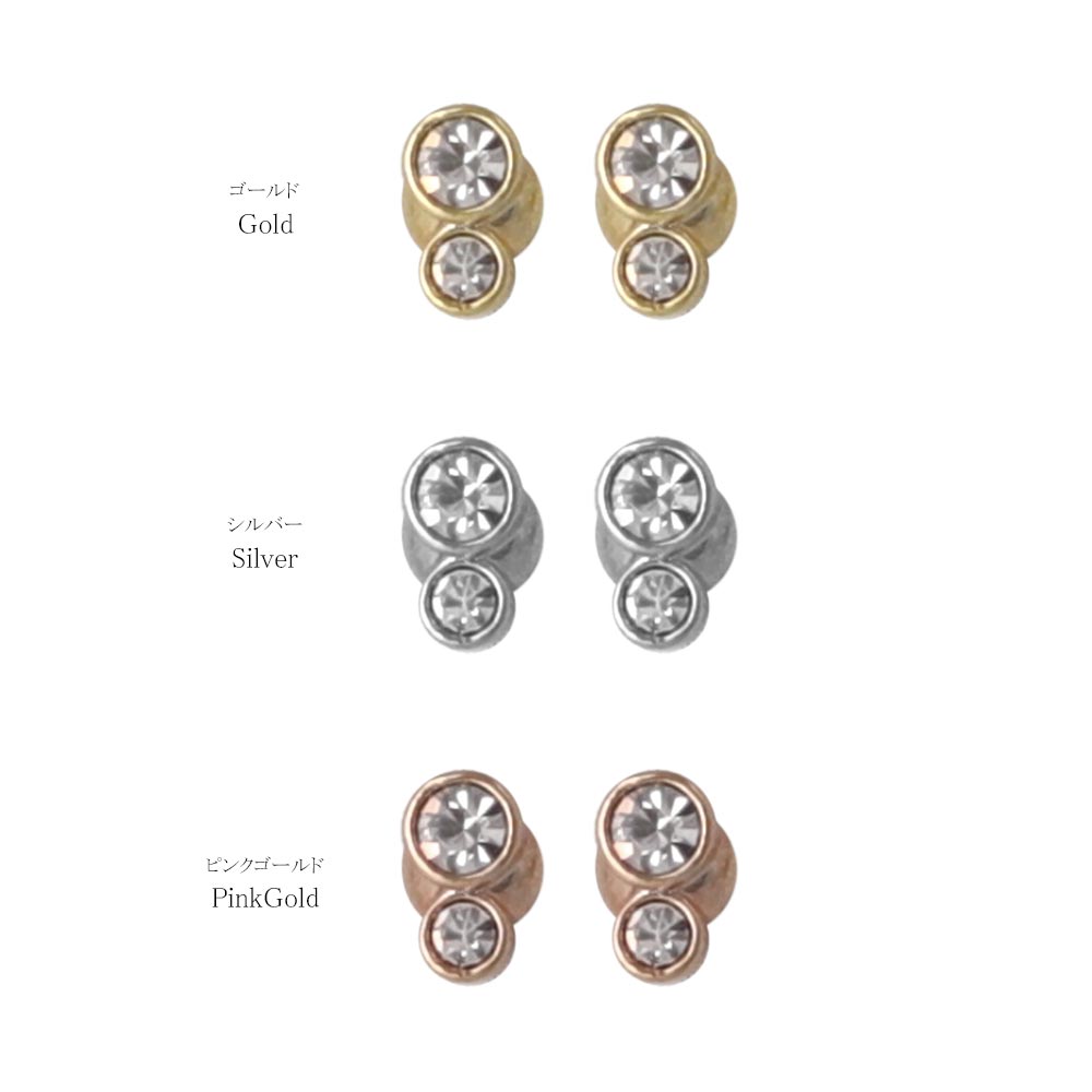 ピアス tiny. ニッケルフリー メタル フレーム 小粒 ダブル ストーン 2粒 ライン スタッドピアス