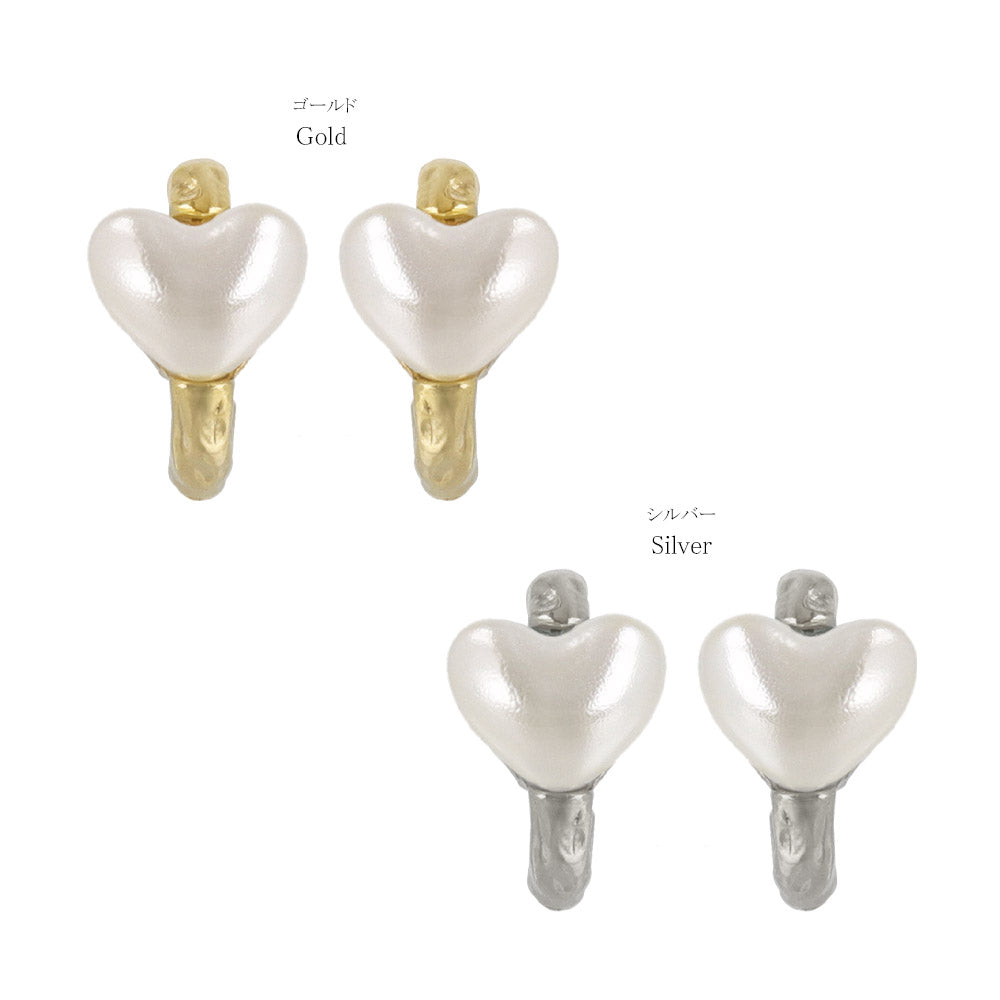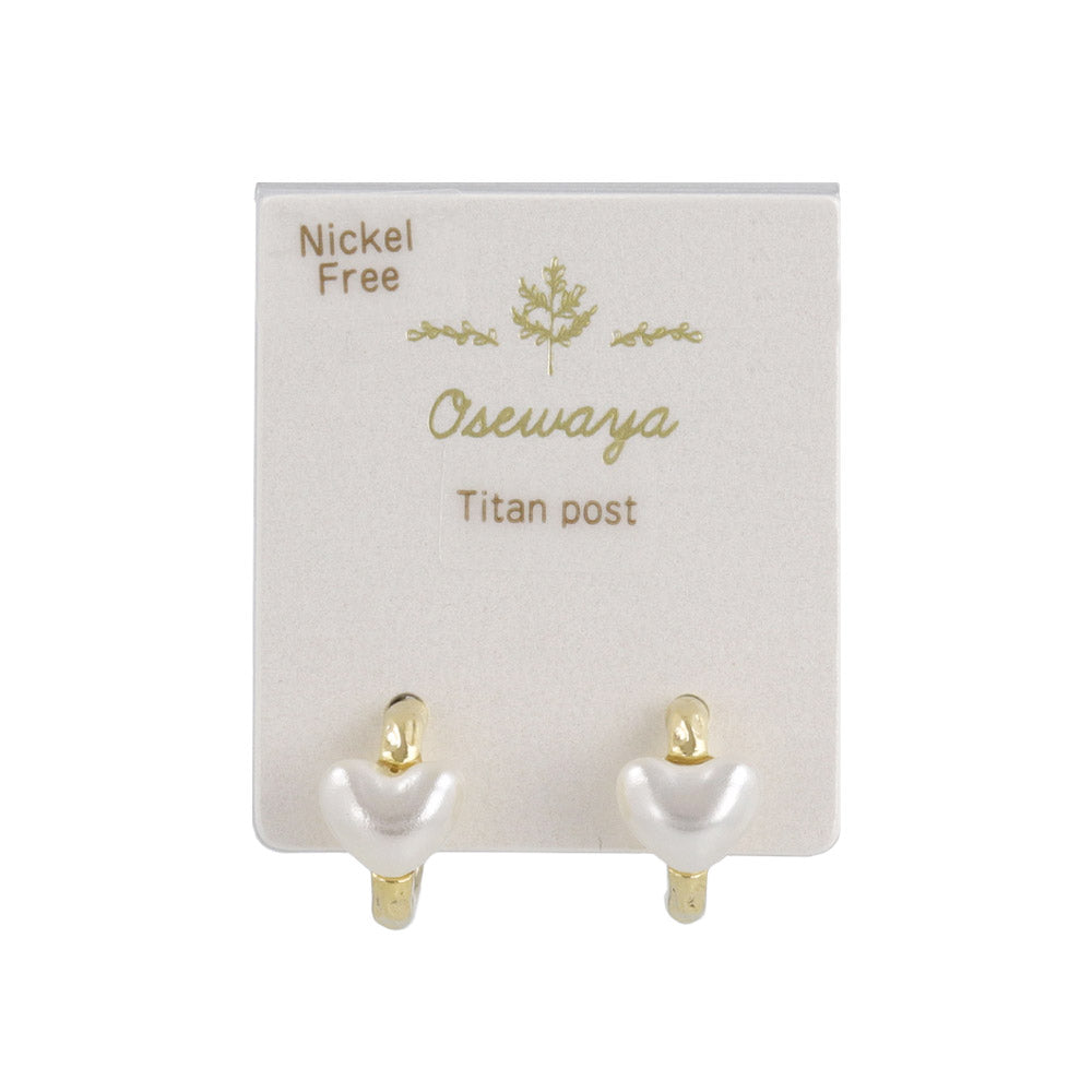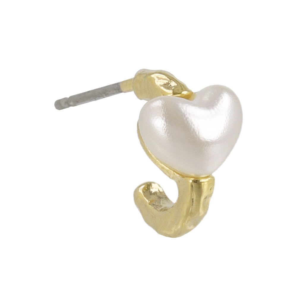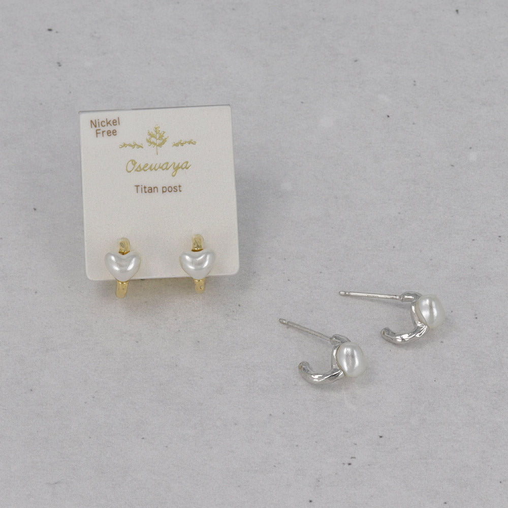 ピアス メタル カーブ ライン ミニ ハート パール チタンポスト C型 スタッドピアス