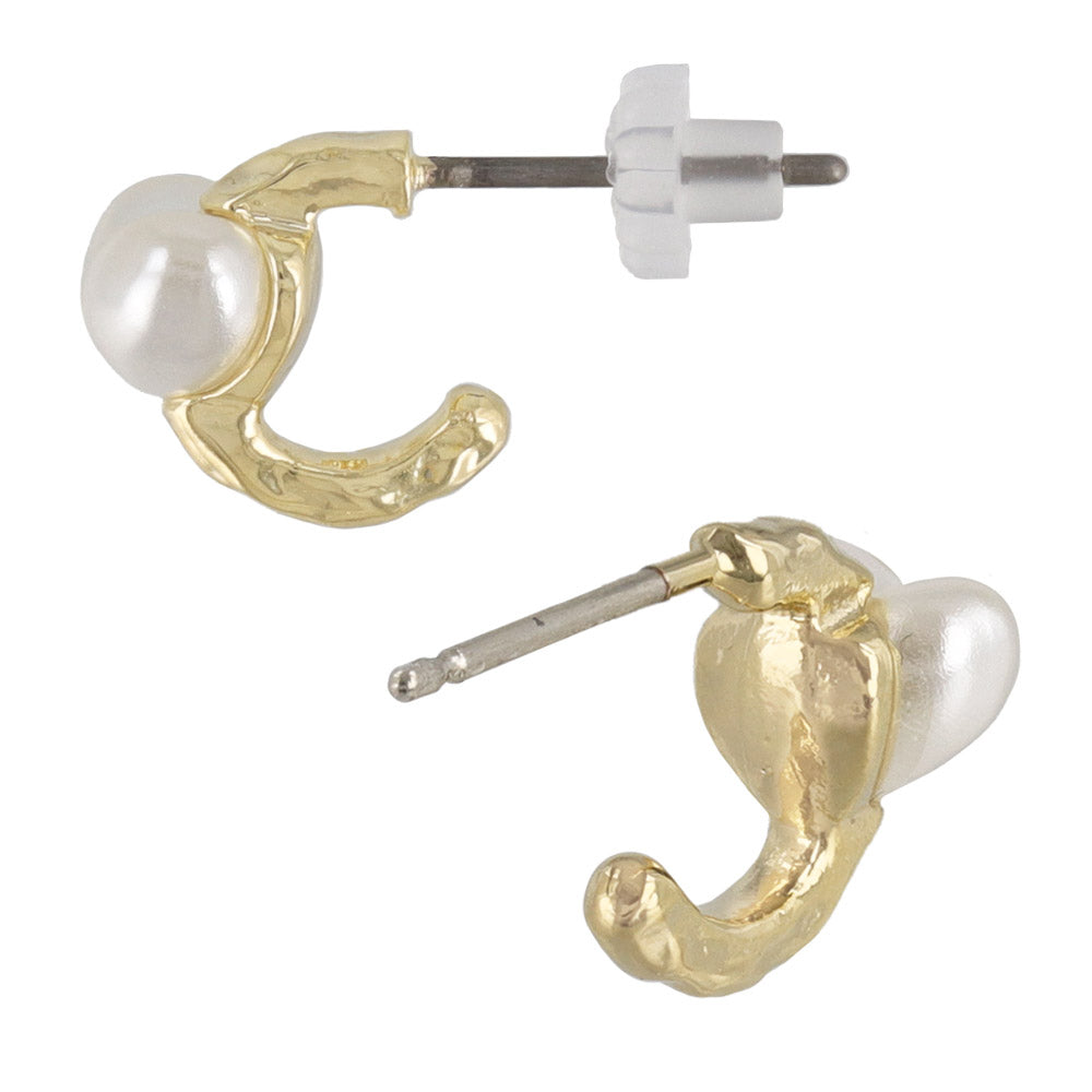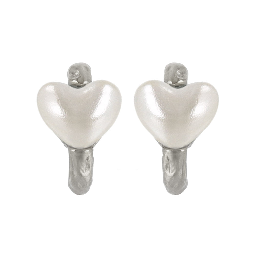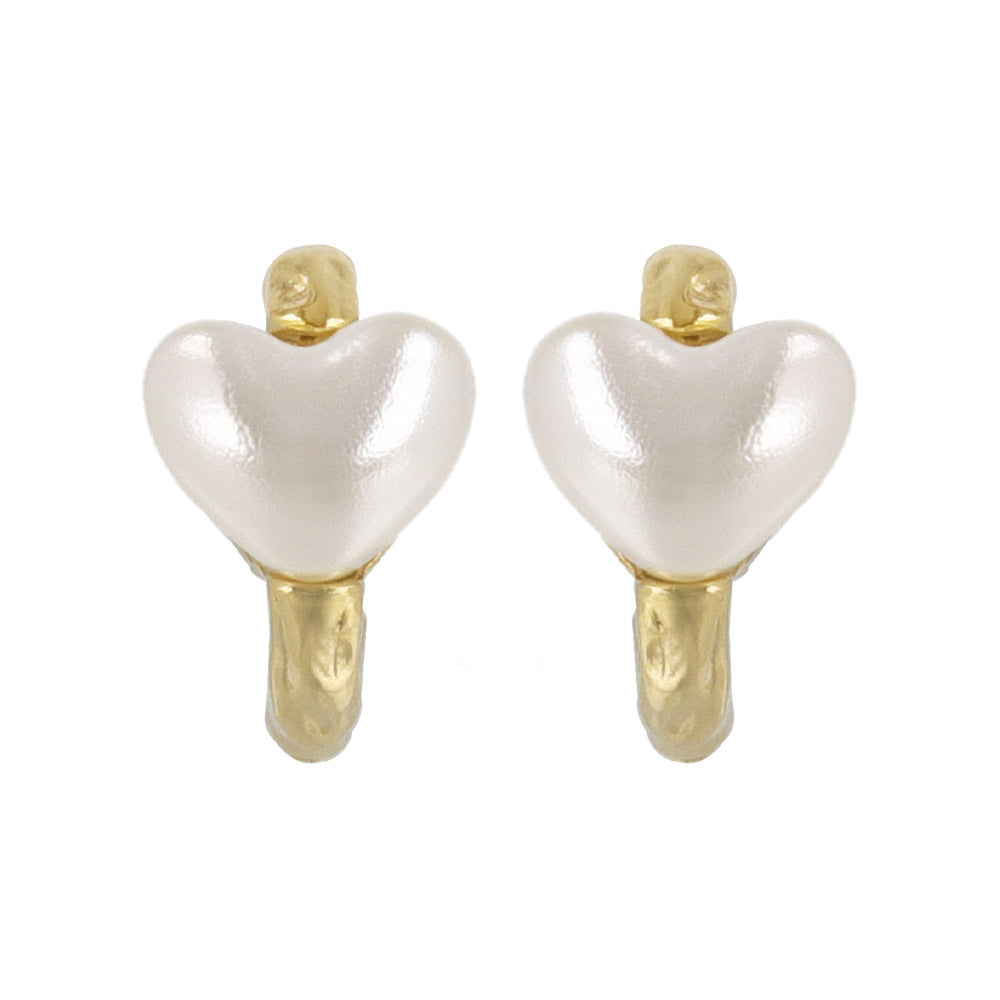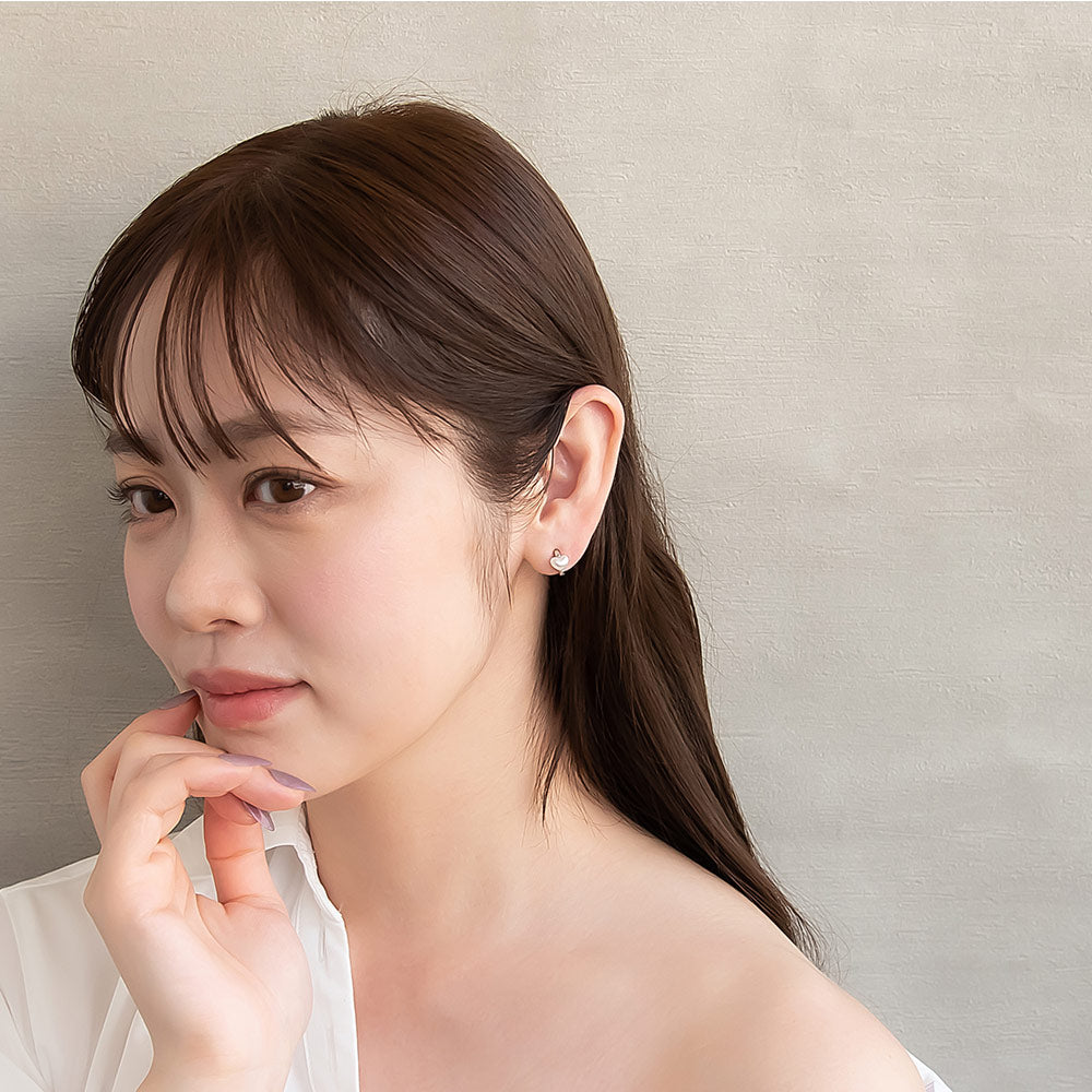 ピアス メタル カーブ ライン ミニ ハート パール チタンポスト C型 スタッドピアス