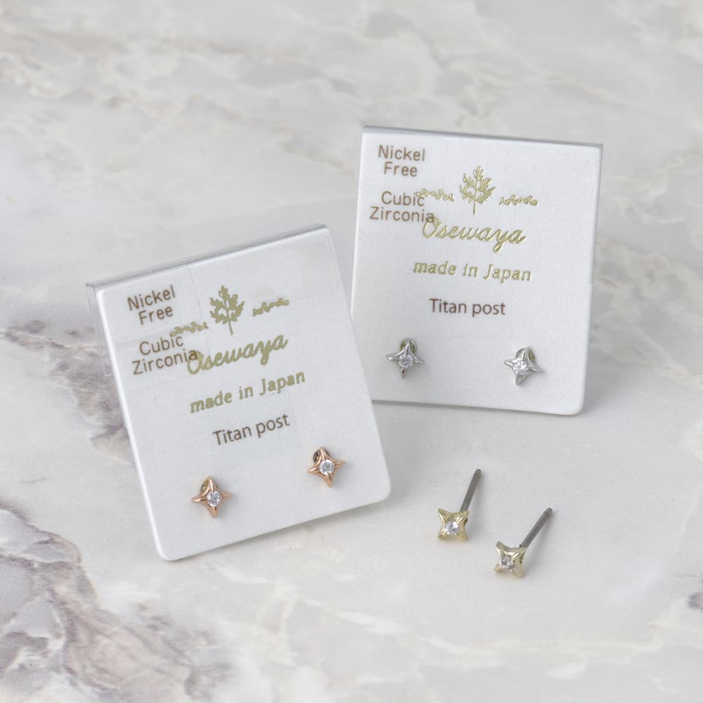 ピアス ニッケルフリー メタル キュービックジルコニア ミニ スター 四芒星 チタンポスト スタッドピアス