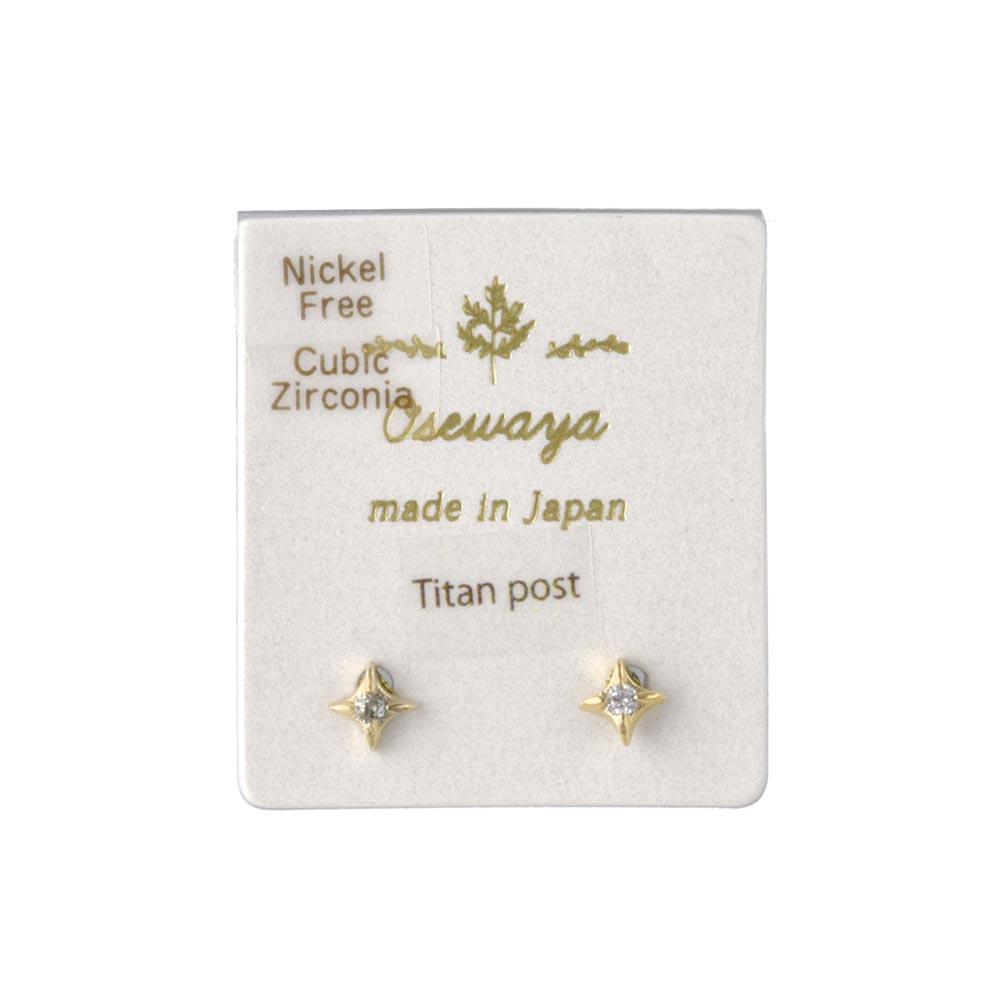 日本製、真鍮、キュービックジルコニア、チタンポスト