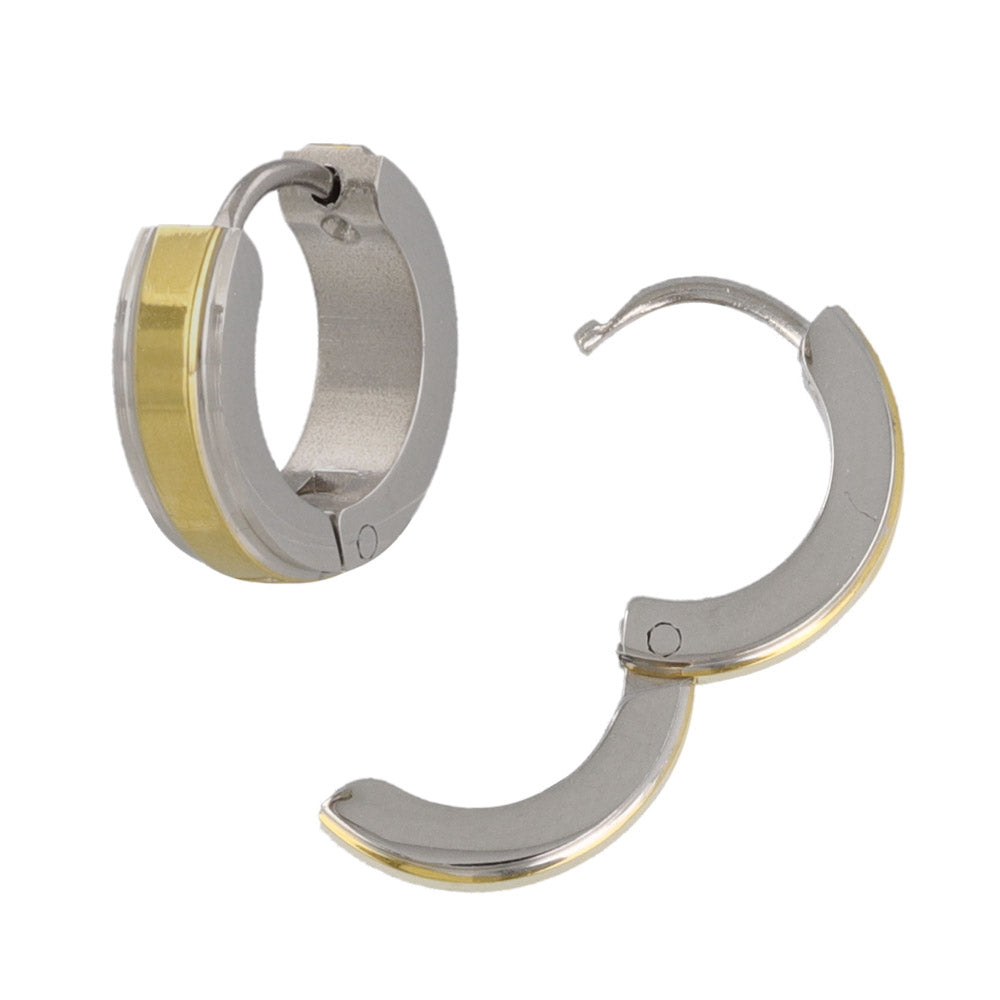 ピアス ステンレス コンビカラー ライン ステンレスポスト ミニ ワンタッチ キャッチレス フープピアス