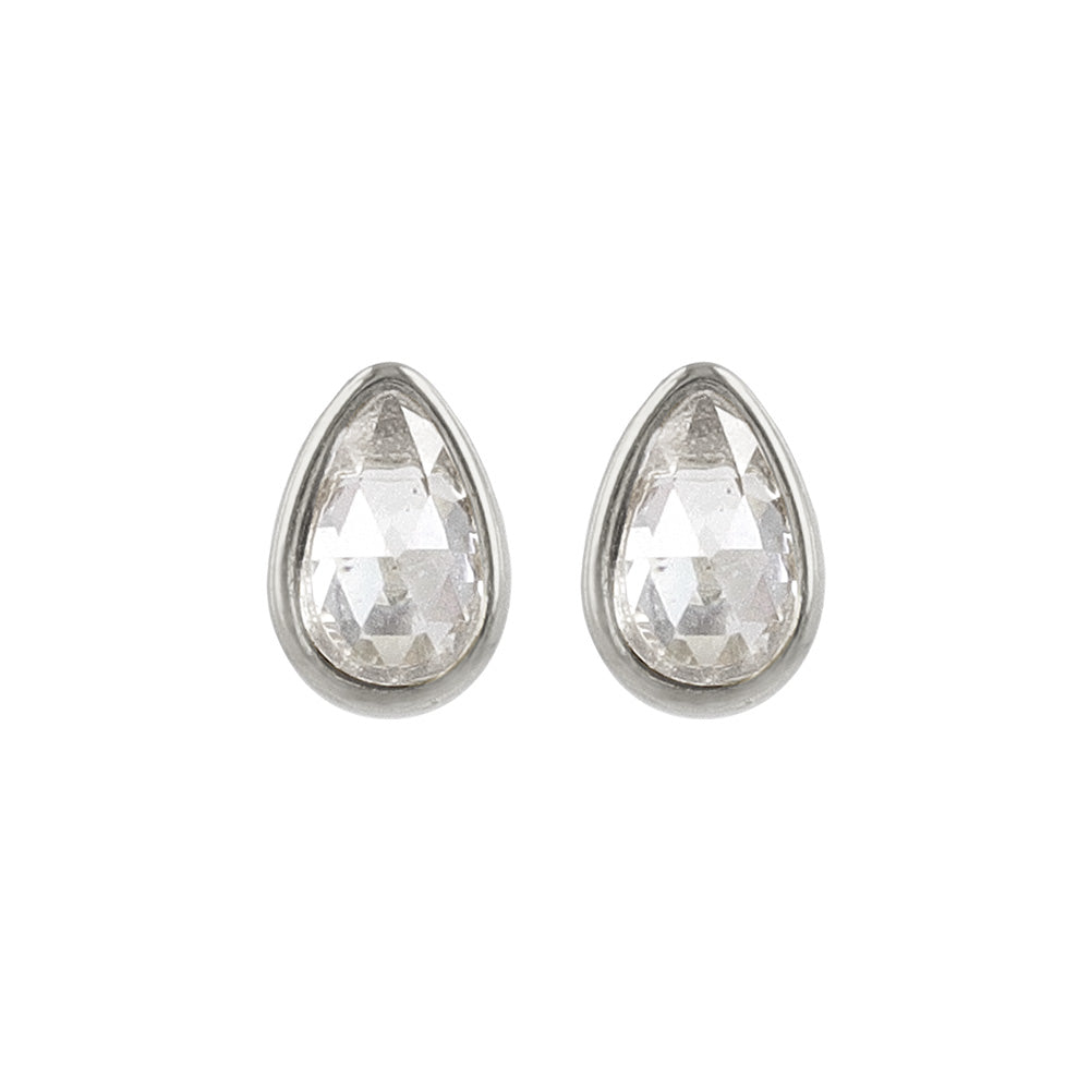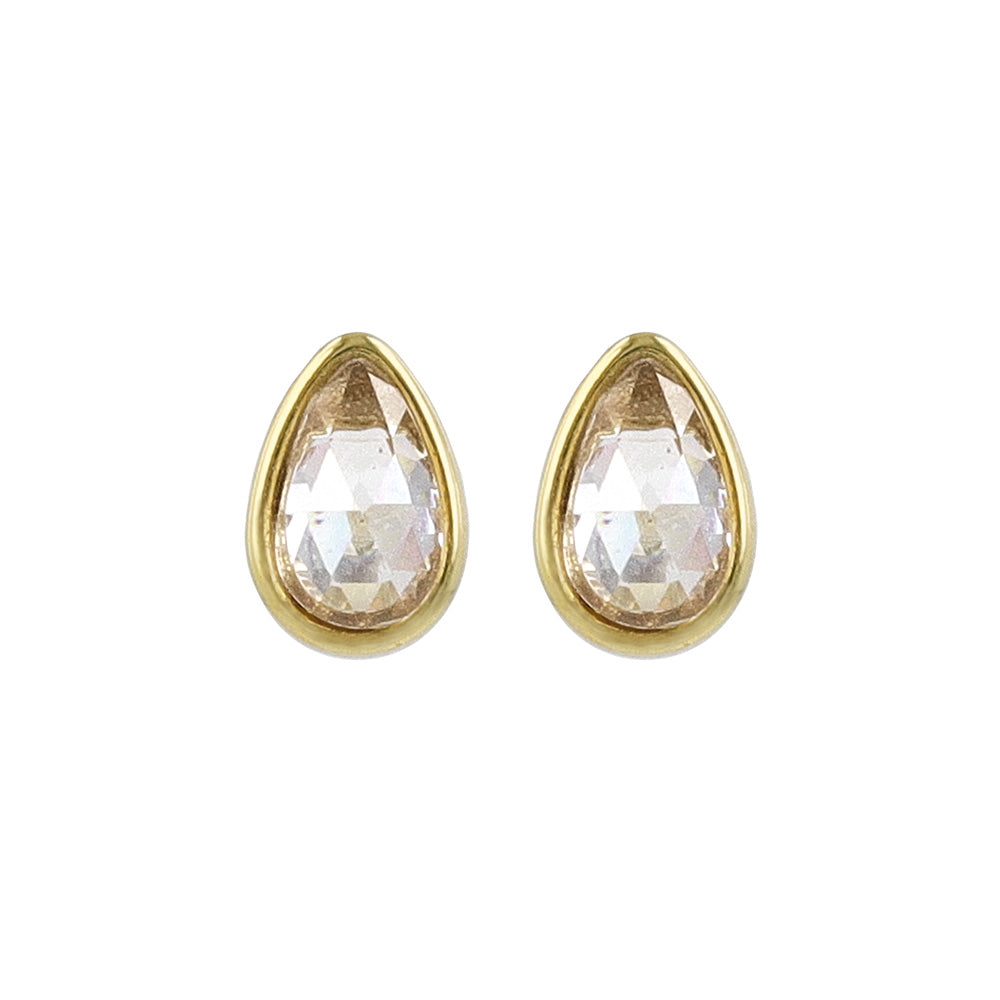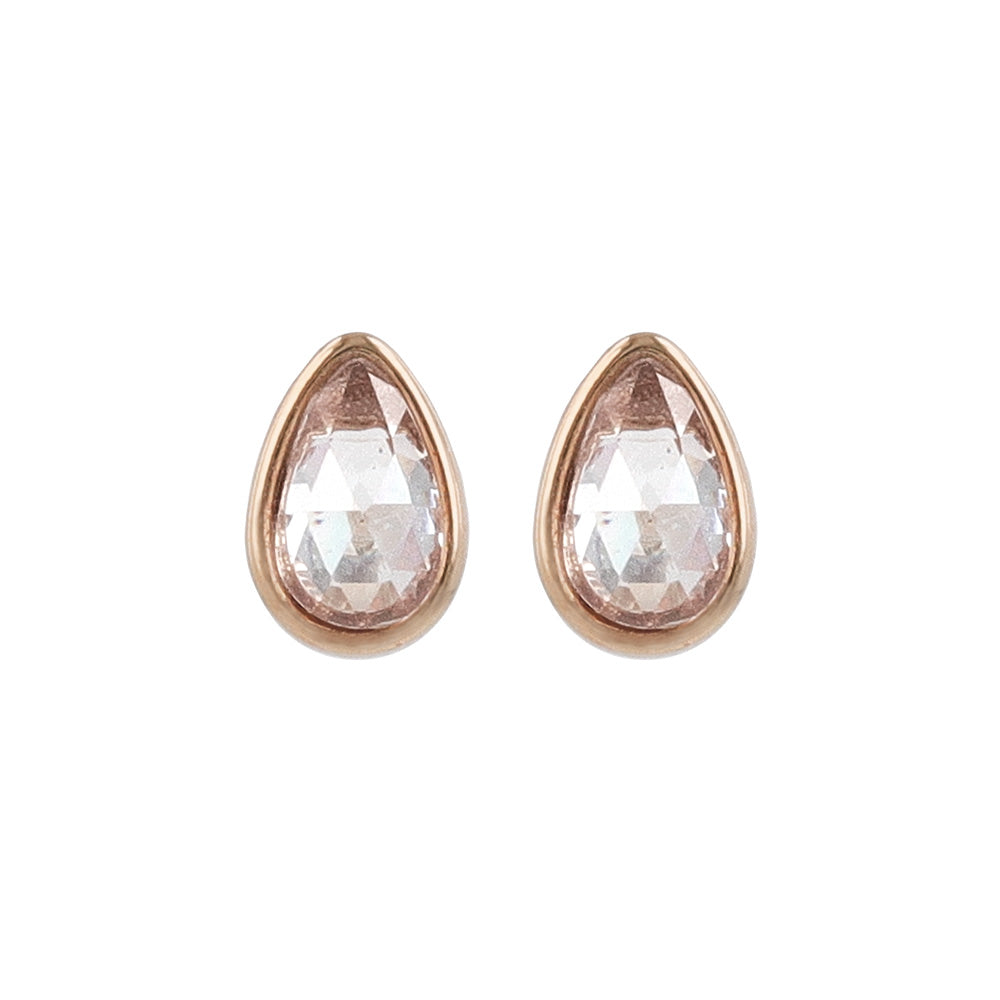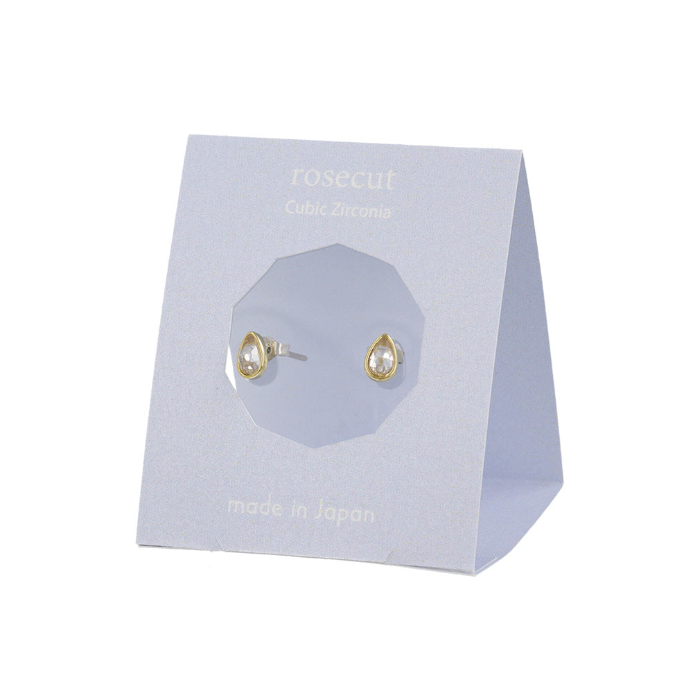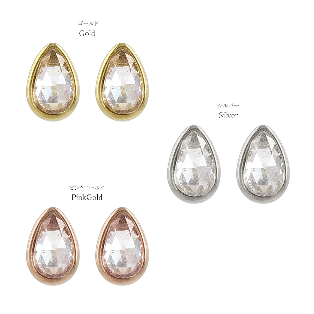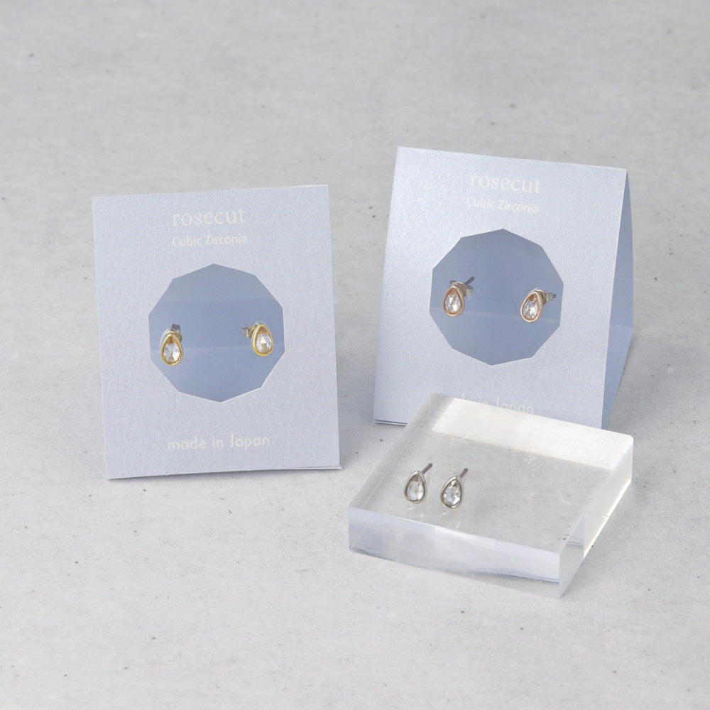 ピアス ニッケルフリー rose cut キュービックジルコニア メタル フレーム ティアドロップ チタンポスト スタッドピアス