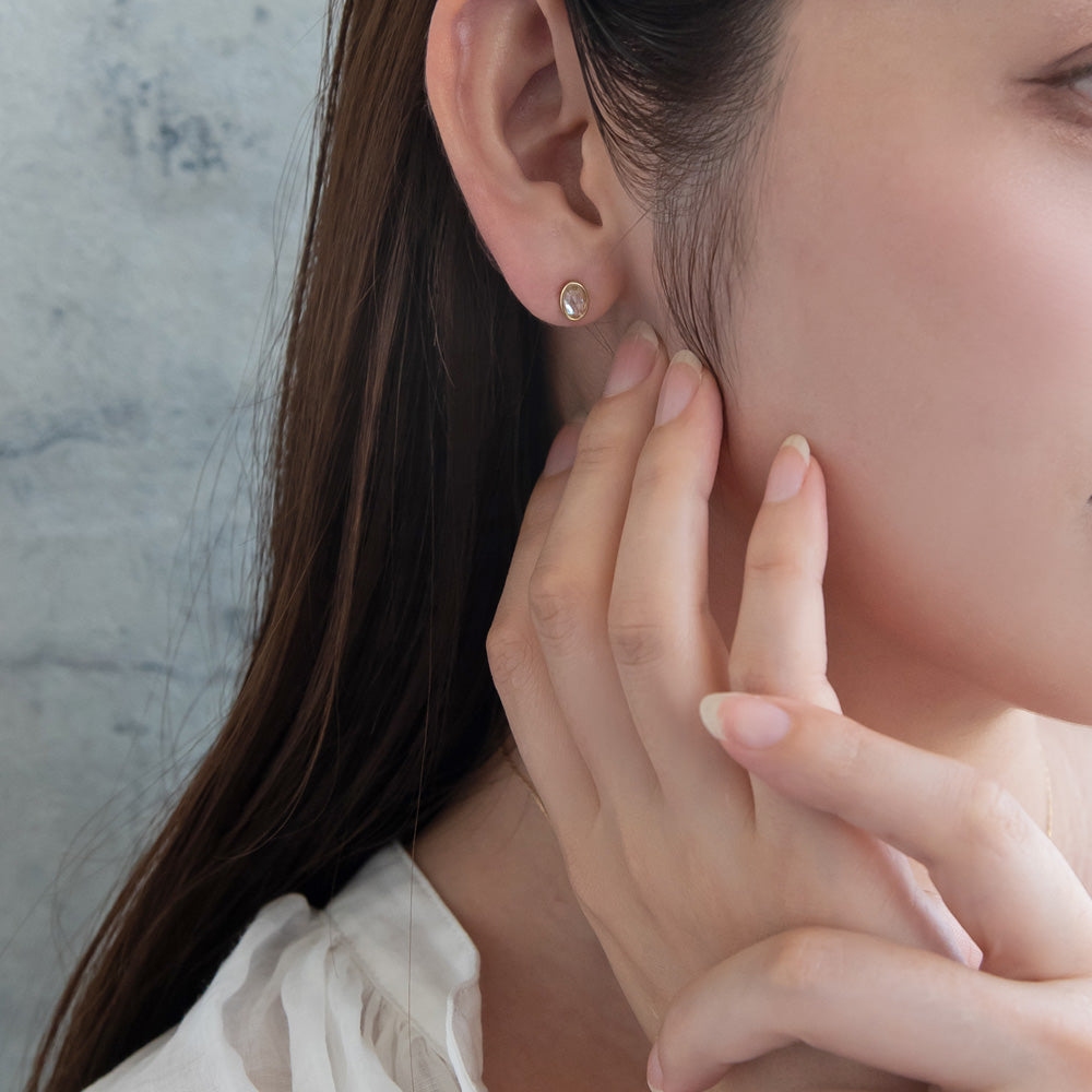 ピアス ニッケルフリー rose cut キュービックジルコニア メタル フレーム オーバル チタンポスト スタッドピアス
