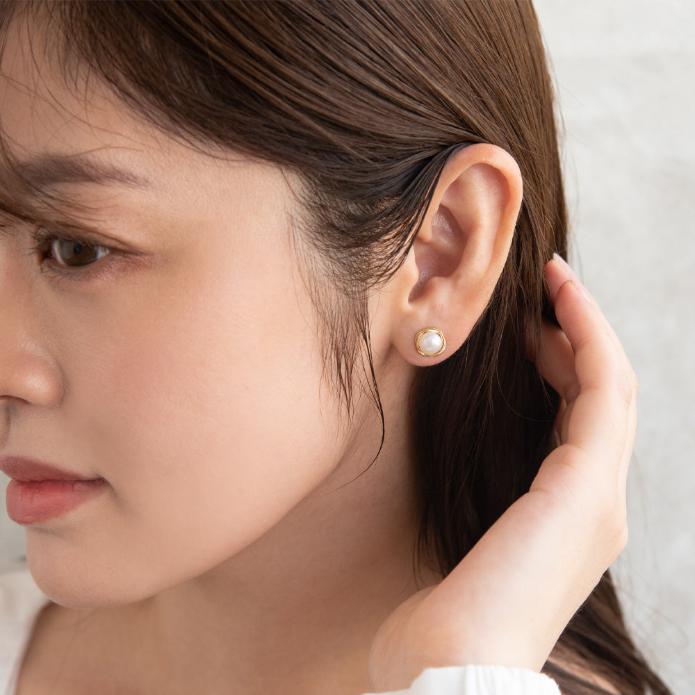 ※こちらの商品は、天然素材(淡水パール)を使用しています。そのため、模様の出方・形・左右での大きさ・色味に個体差があります。