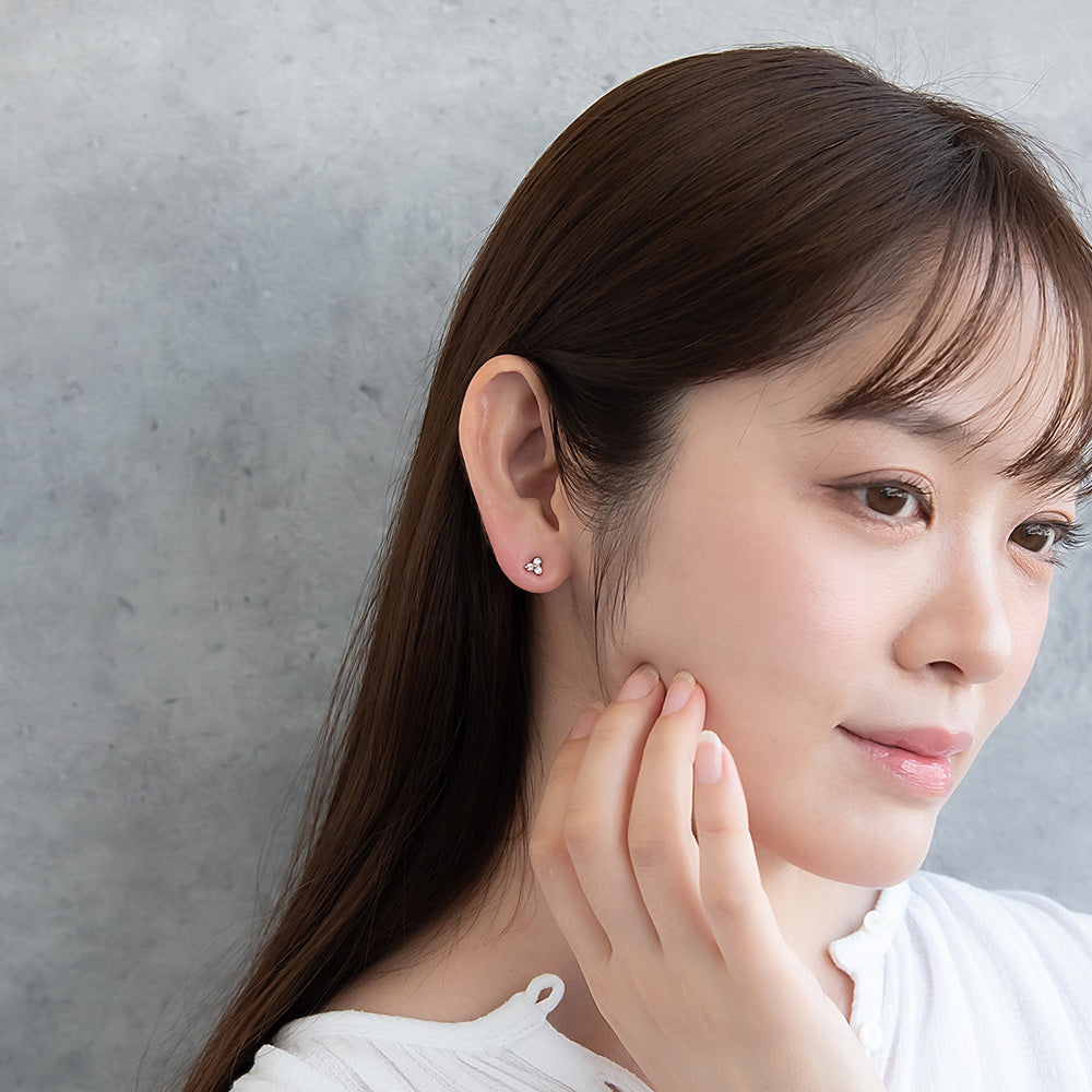 pp0742キュービックジルコニアをあしらったポストピアスは、シンプルなデザインながらもお顔まわりを華やかな印象に。