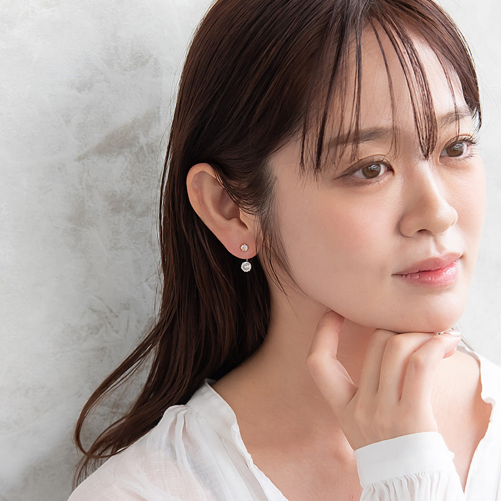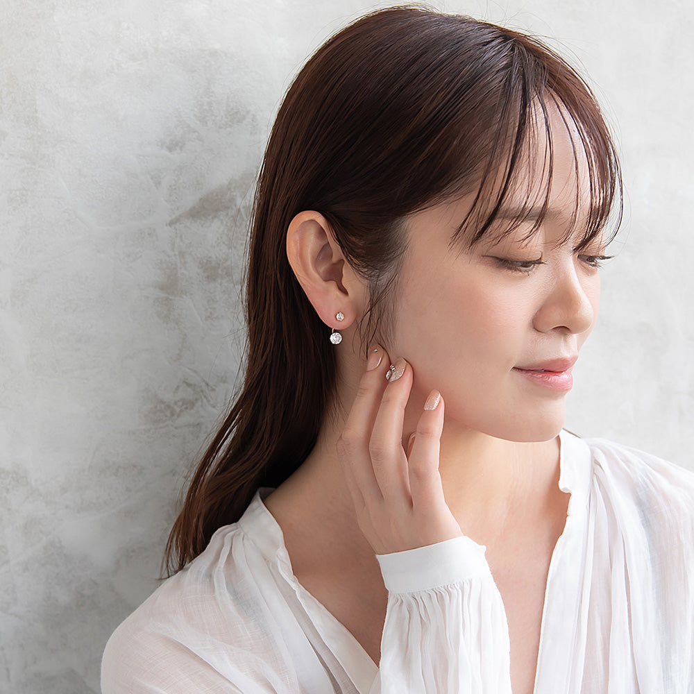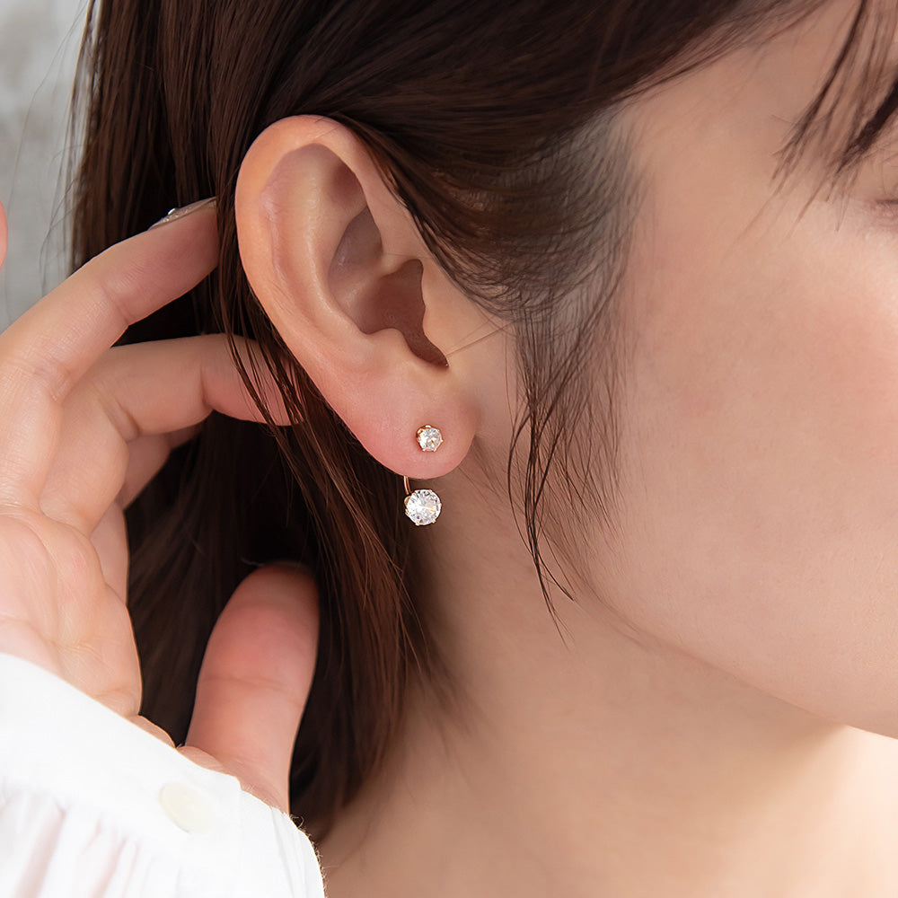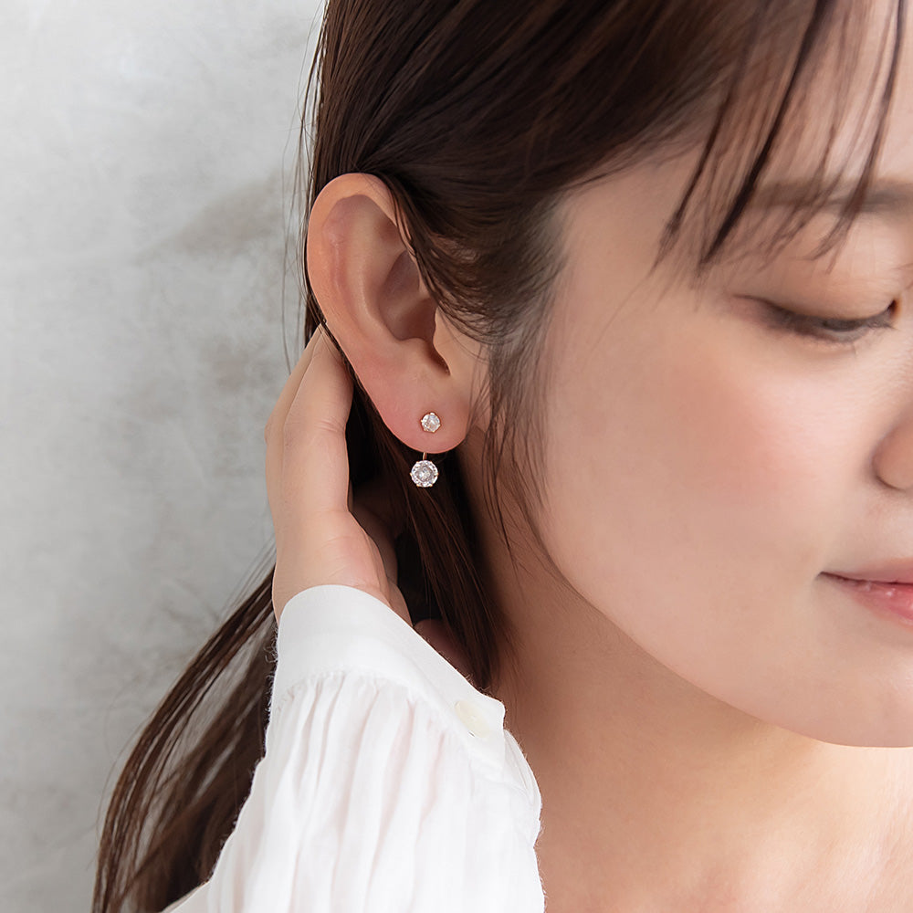 pp0748オールシーズン使えるバックキャッチピアス。キュービックジルコニアで上品な輝きを耳元にプラス。ひとくせありのしゃれ感あるデザインが魅力的。幅広いコーデと好相性の優秀アイテムです。