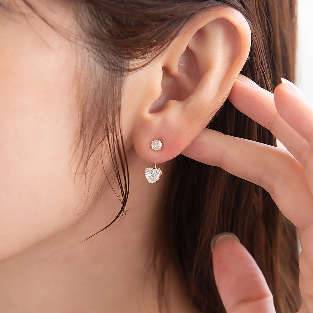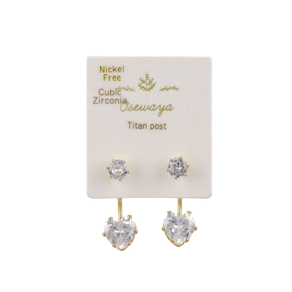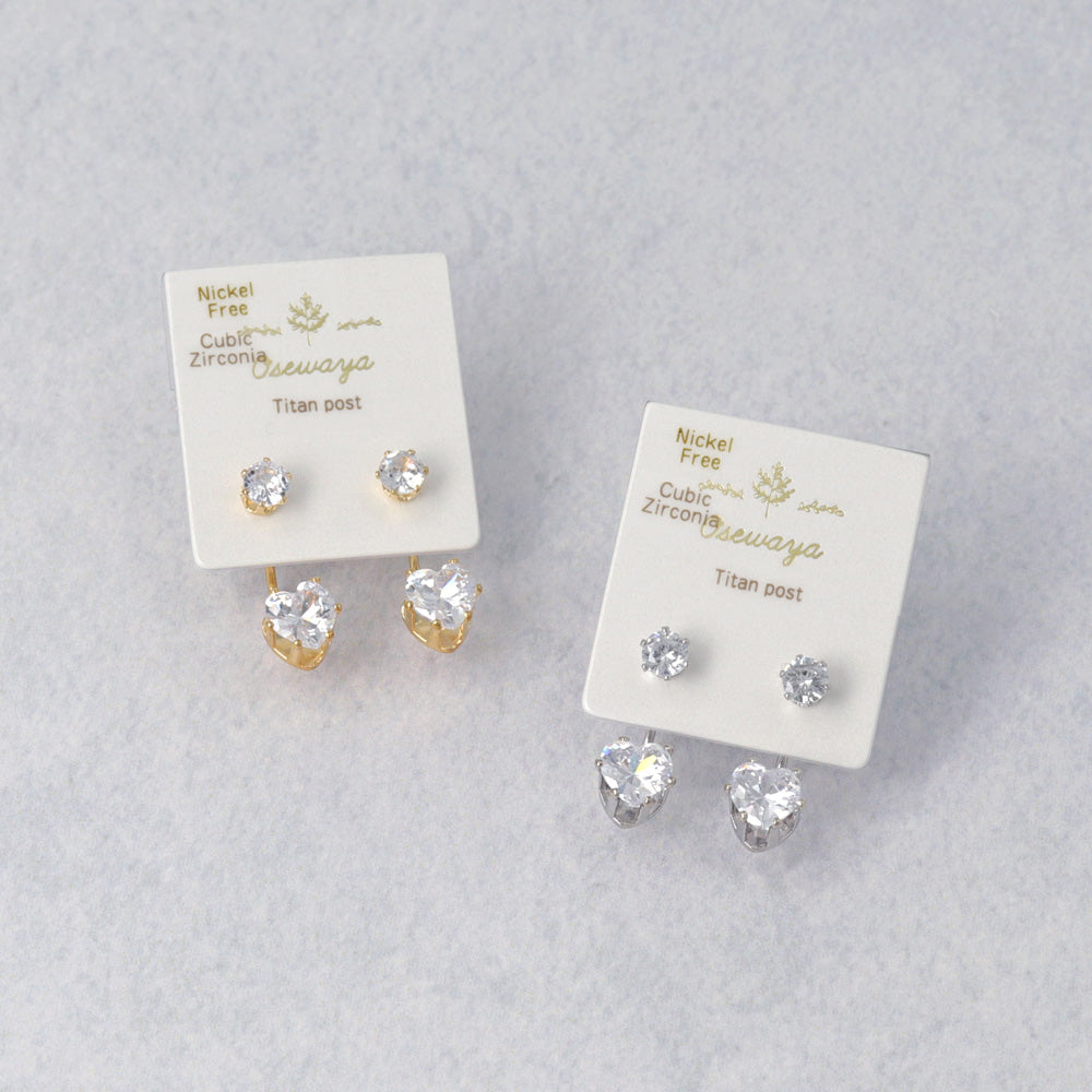 ピアス ニッケルフリー メタル キュービックジルコニア ハート バックキャッチ チタンポスト スタッドピアス