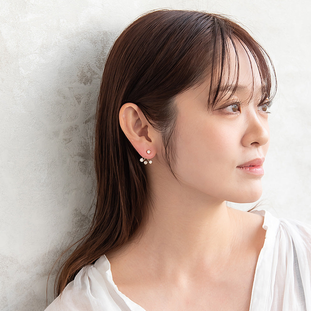 pp0750オールシーズン使えるバックキャッチピアス。キュービックジルコニアで上品な輝きを耳元にプラス。ひとくせありのしゃれ感あるデザインが魅力的。幅広いコーデと好相性の優秀アイテムです。