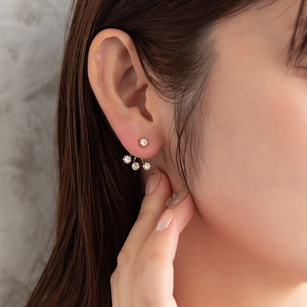 ピアス ニッケルフリー メタル キュービックジルコニア トリプル バックキャッチ チタンポスト スタッドピアス