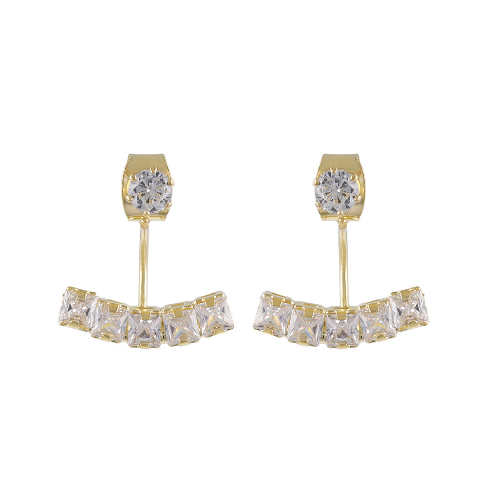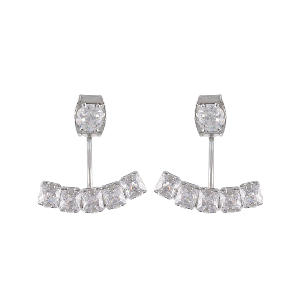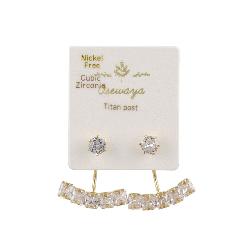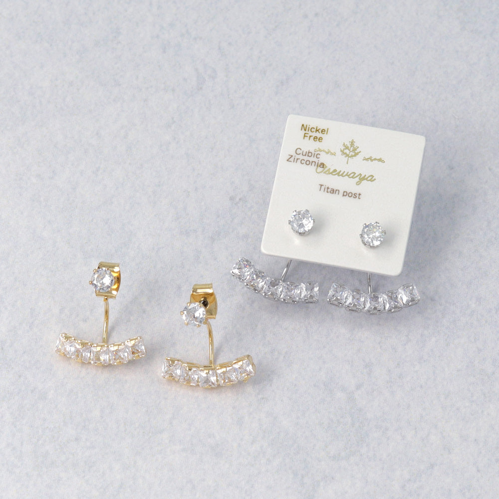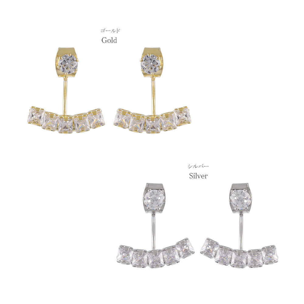 ピアス ニッケルフリー メタル キュービックジルコニア スクエアカット カーブ ライン バックキャッチ チタンポスト スタッドピアス