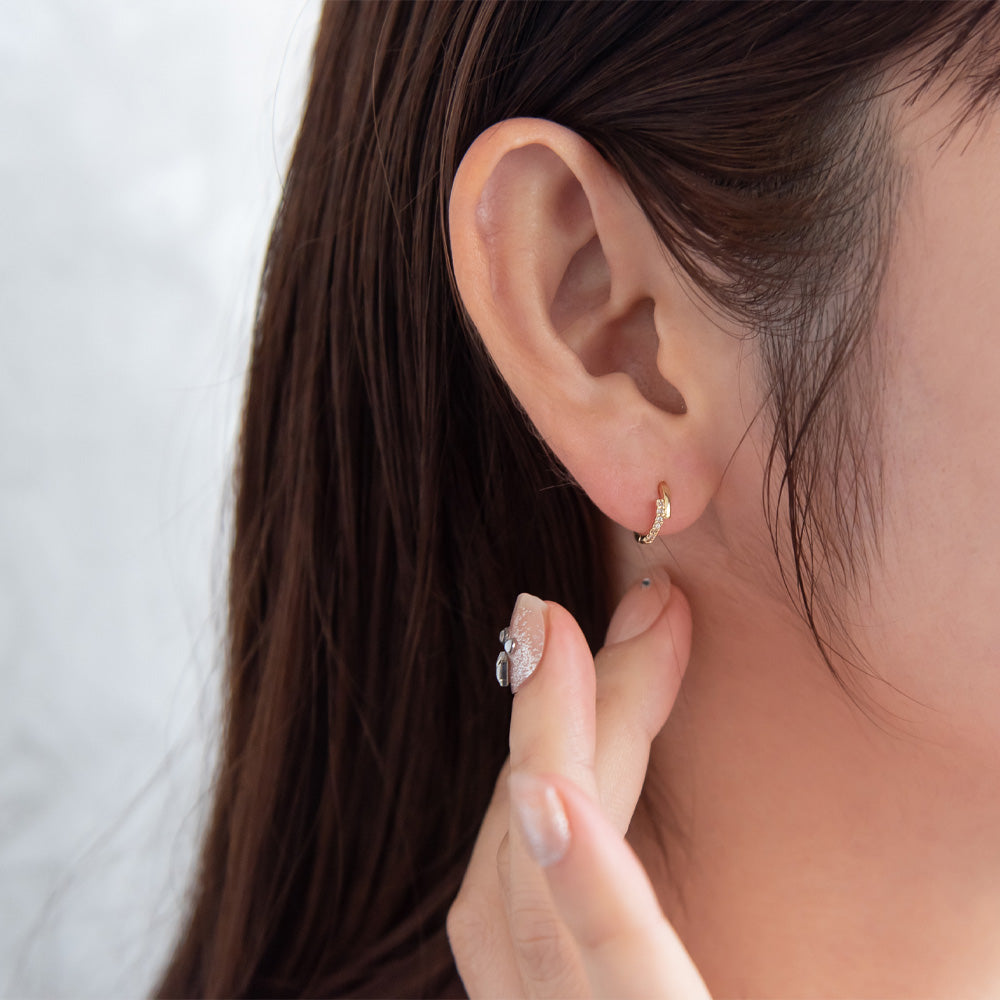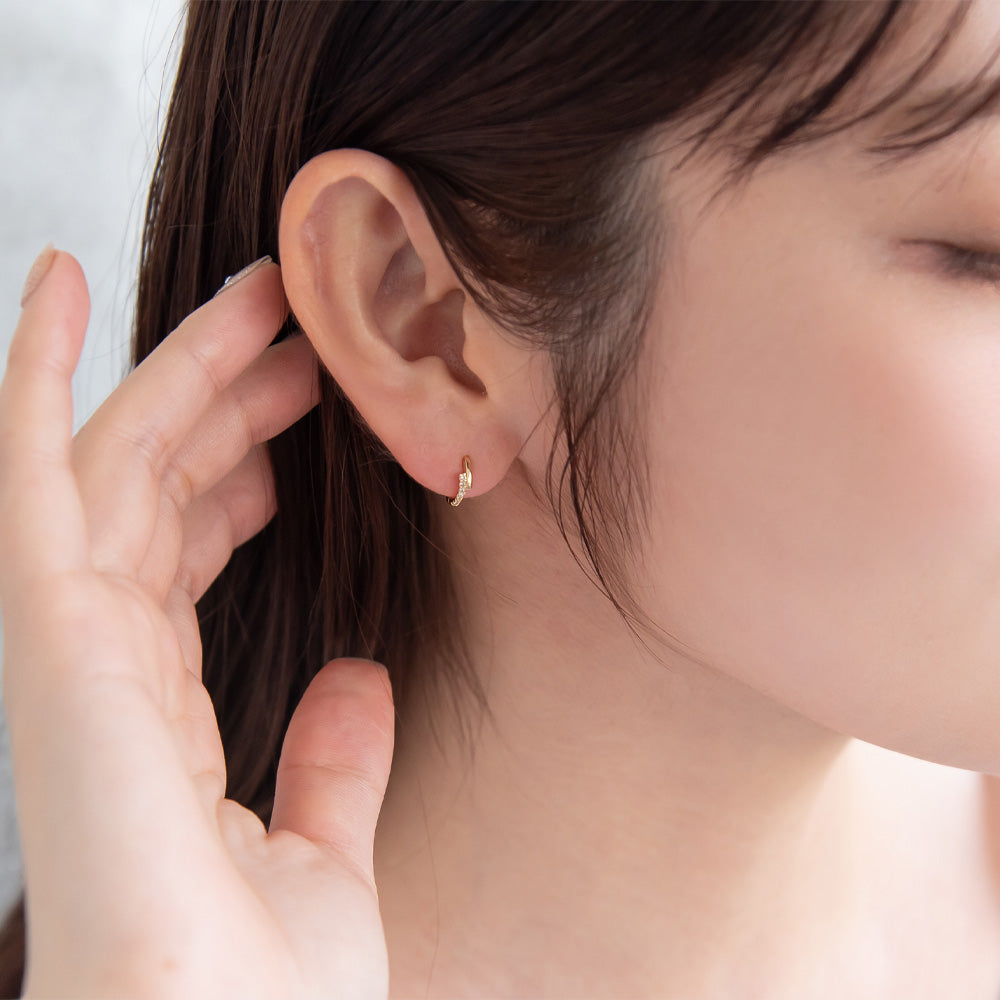 ピアス ニッケルフリー キュービックジルコニア メタル ワンタッチ フープピアス