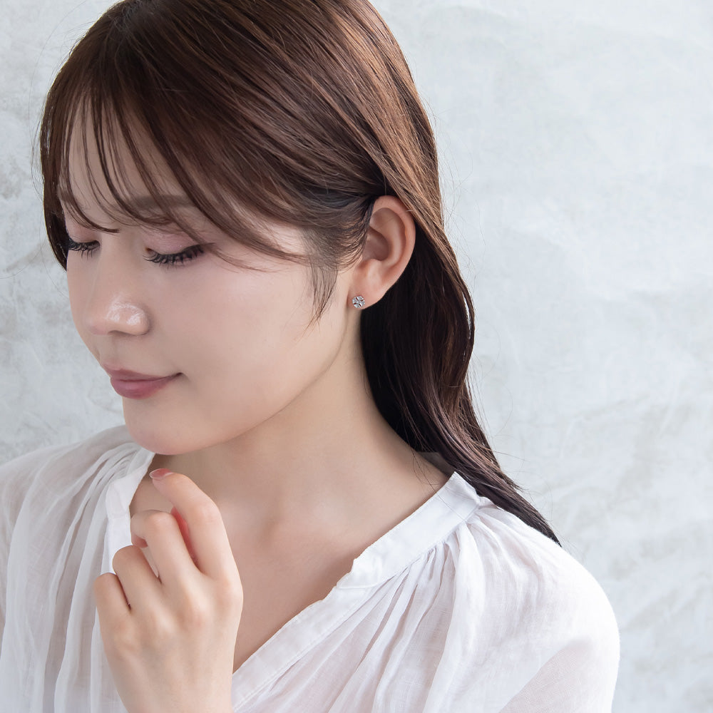 ロジウムプレイティングは金属アレルギーが起こりにくいニッケルフリー仕様で、お肌に優しい作りとなっています。※すべての方に金属アレルギー反応が出ないこと(アレルギーフリー)を保証するものではございません。 皮膚に異常を感じた場合は直ちにご使用を中止し、専門医にご相談ください。