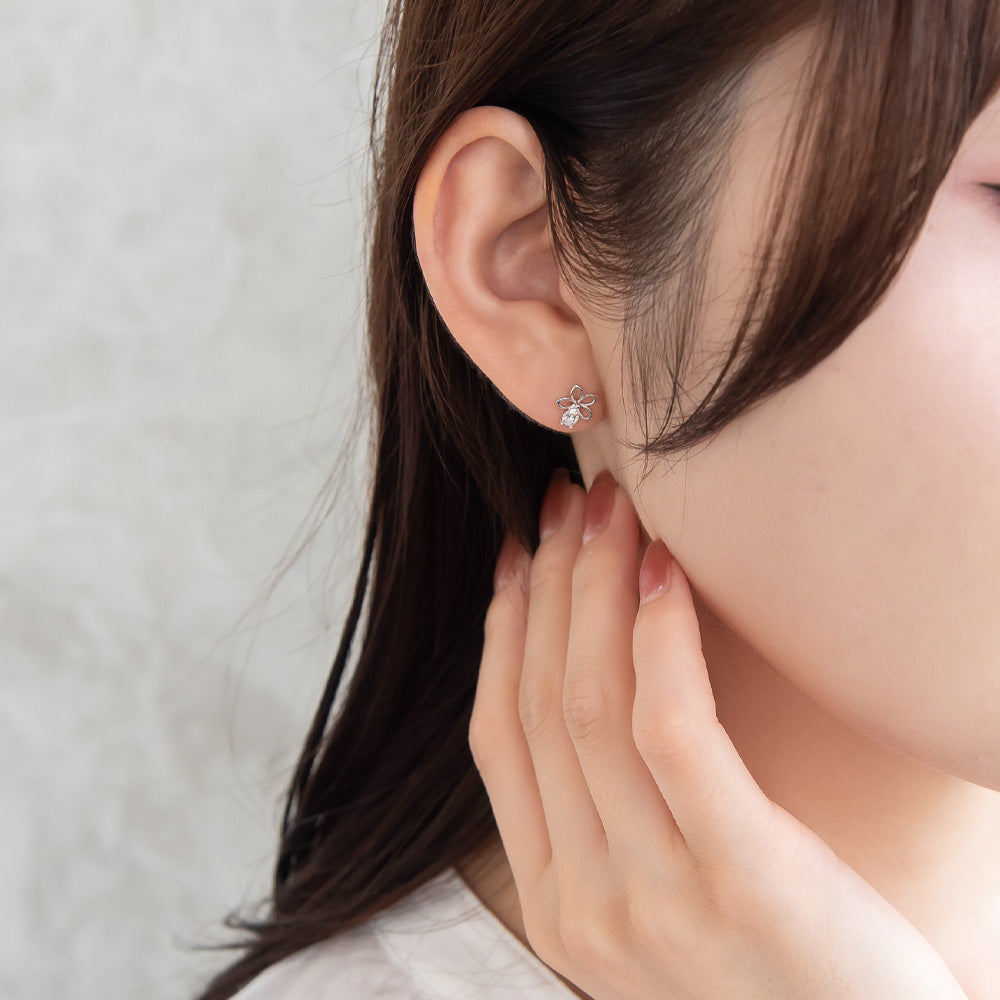 ロジウムプレイティングは金属アレルギーが起こりにくいニッケルフリー仕様で、お肌に優しい作りとなっています。※すべての方に金属アレルギー反応が出ないこと(アレルギーフリー)を保証するものではございません。 皮膚に異常を感じた場合は直ちにご使用を中止し、専門医にご相談ください。