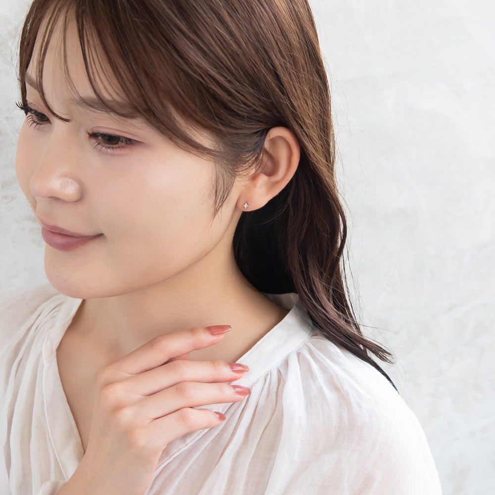 シルバー925(ポスト部分含む)、ロジウムプレイティング(ニッケルフリー)、キュービックジルコニア