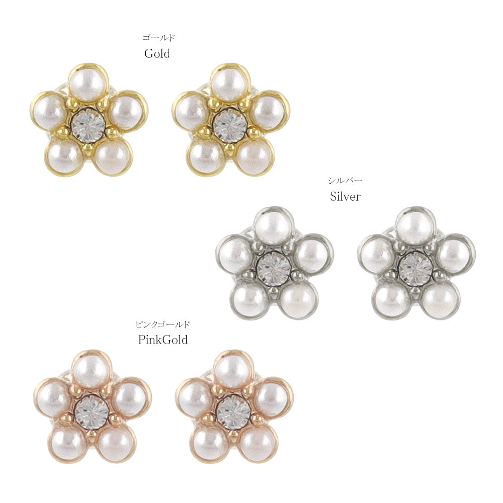 ピアス tiny. ニッケルフリー メタル ストーン パール フラワー 小粒 スタッドピアス