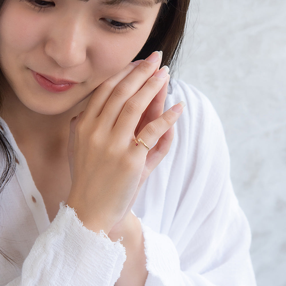 rb0736ストーンがきらめく、上品なオープンリング。手元をお洒落に演出する、シンプルで飽きの来ないデザイン。