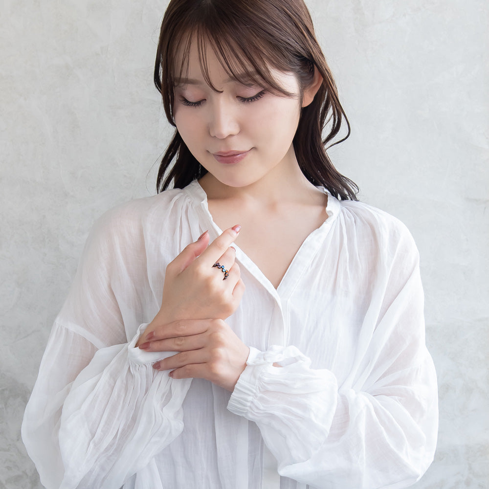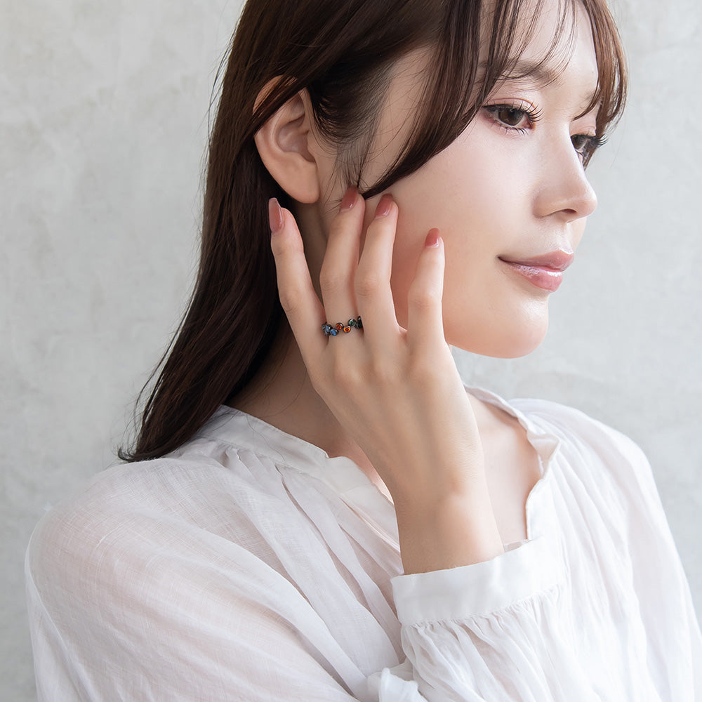 rg0645カラフルストーンがガンメタルに映えるデザインリング。