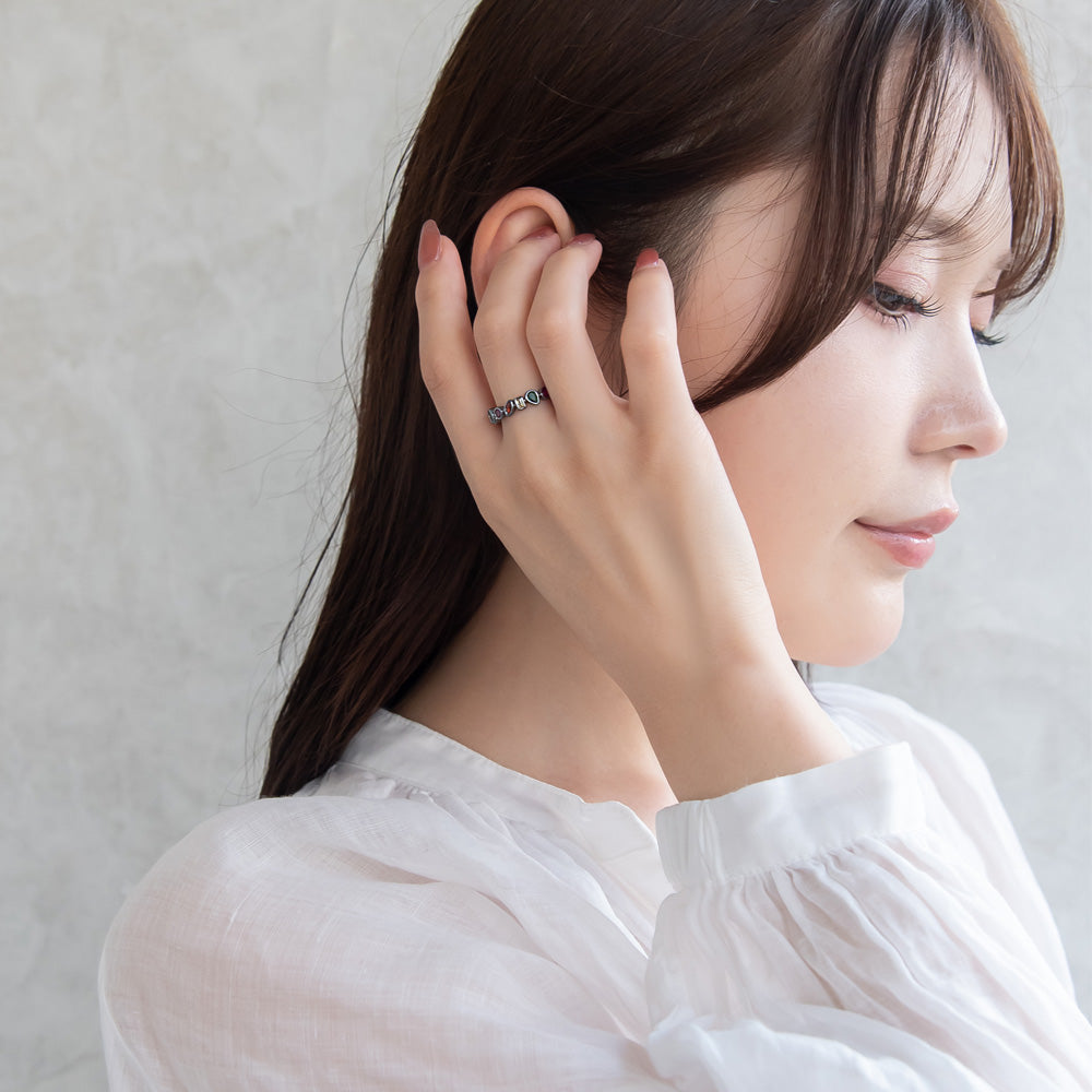 rg0647カラフルストーンがガンメタルに映えるデザインリング。