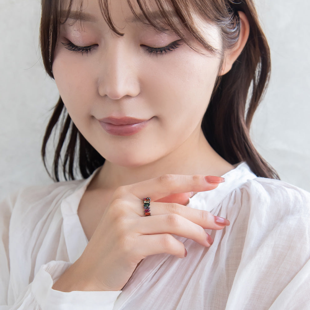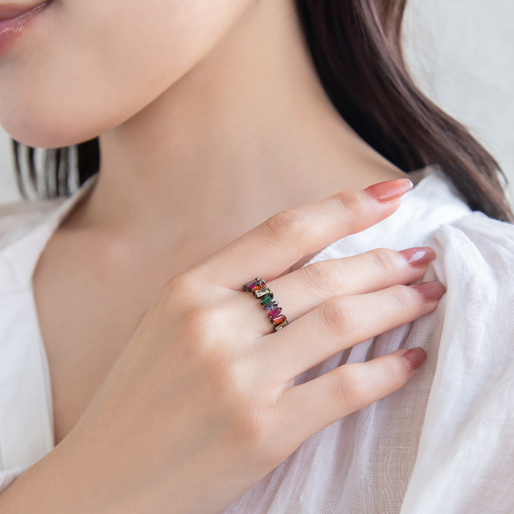 rg0648カラフルストーンがガンメタルに映えるデザインリング。