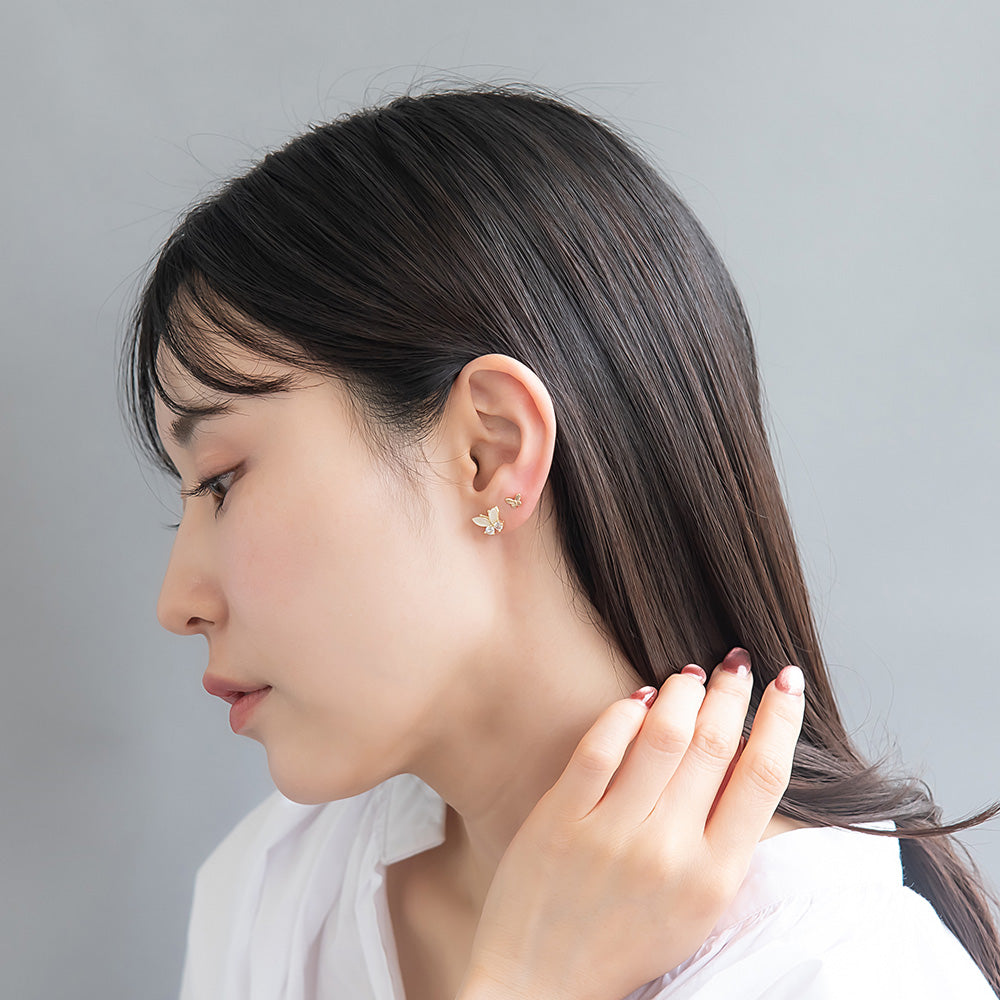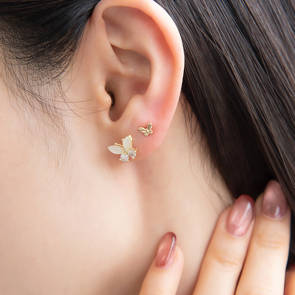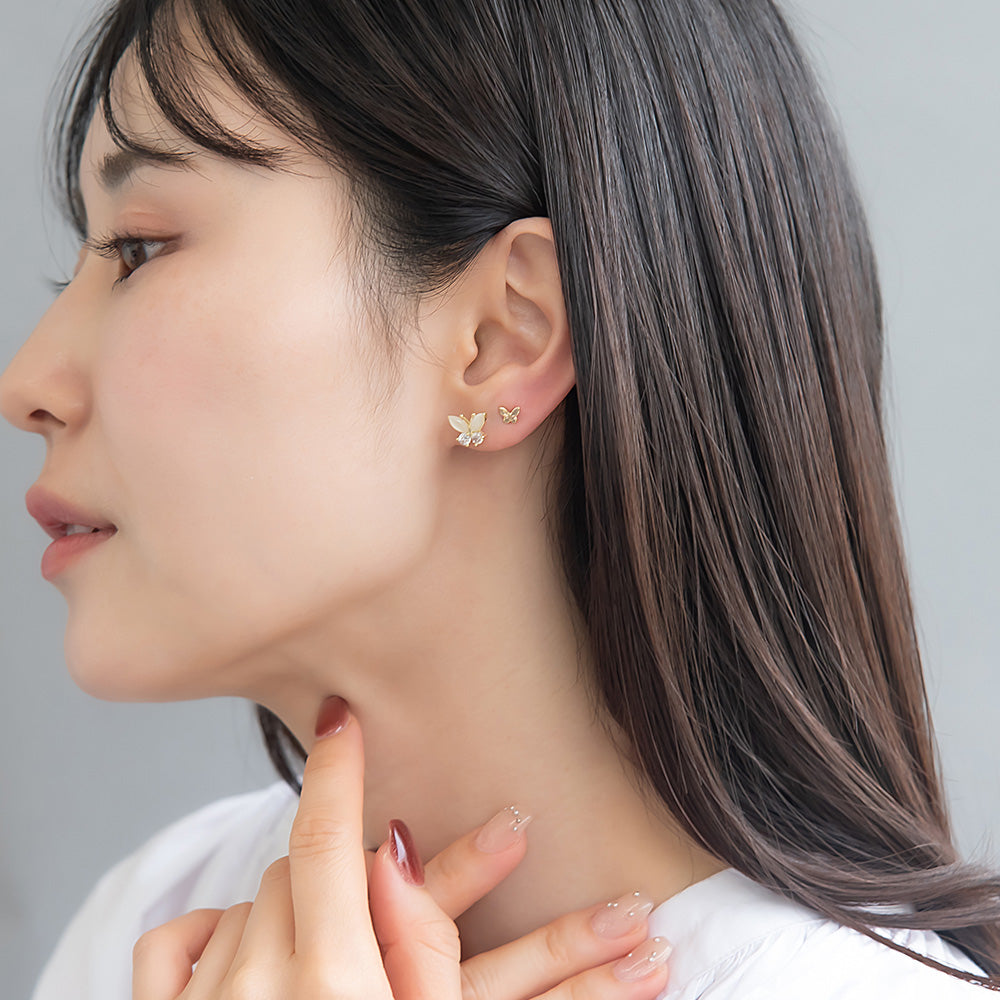 ピアス ニッケルフリー メタル キュービックジルコニア 合成キャッツアイ バタフライ 6個セット シルバー925ポスト スタッドピアス