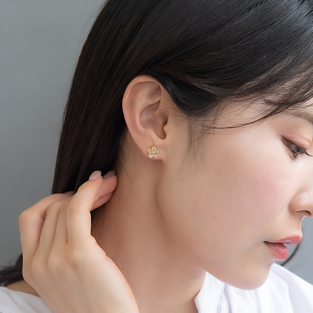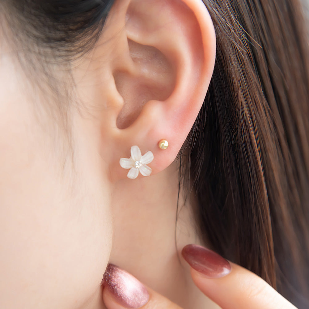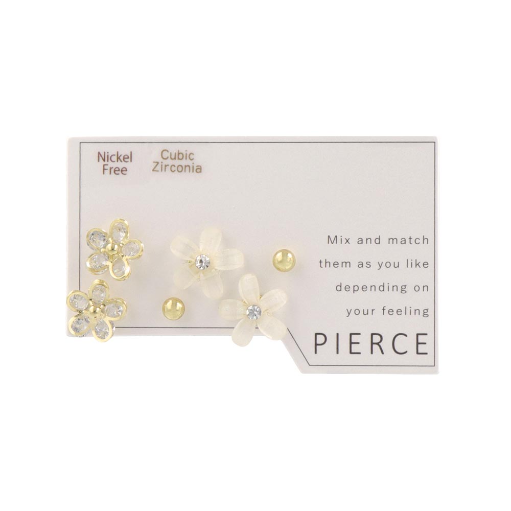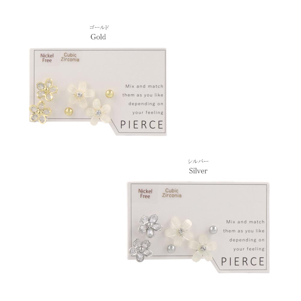 ピアス ニッケルフリー メタル キュービックジルコニア フラワー ストーン ボール 6個セット シルバー925ポスト スタッドピアス