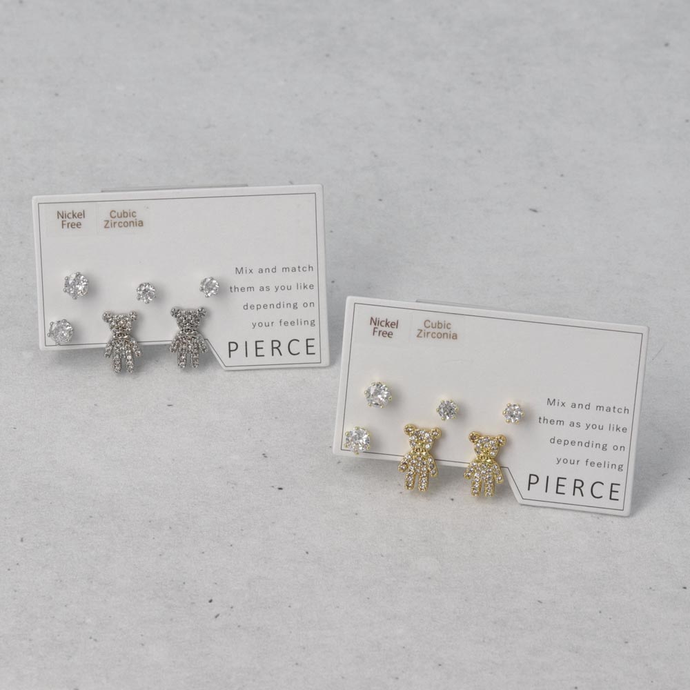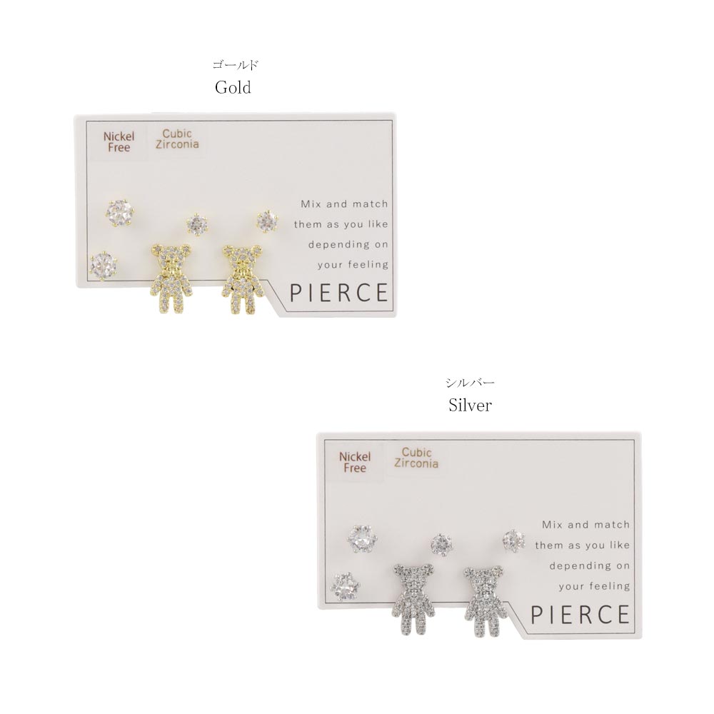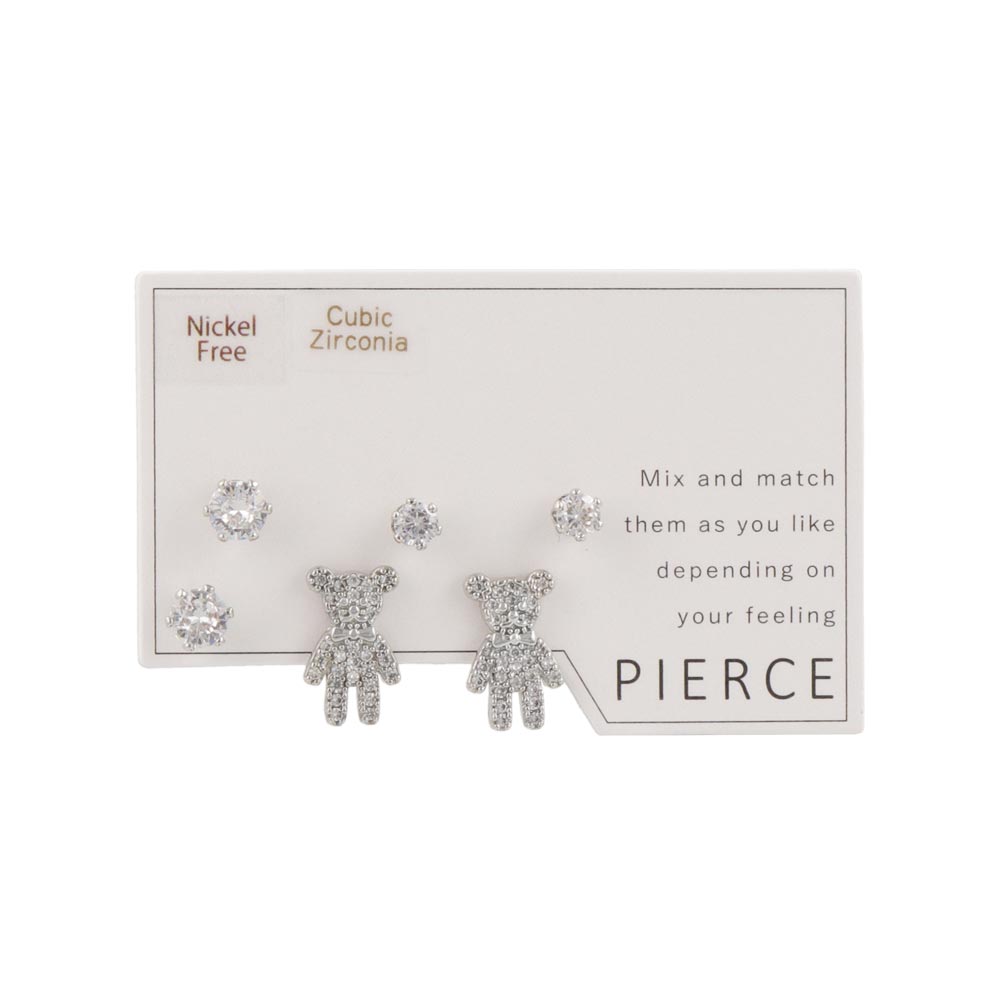 ピアス ニッケルフリー メタル キュービックジルコニア クマ 6個セット シルバー925ポスト スタッドピアス