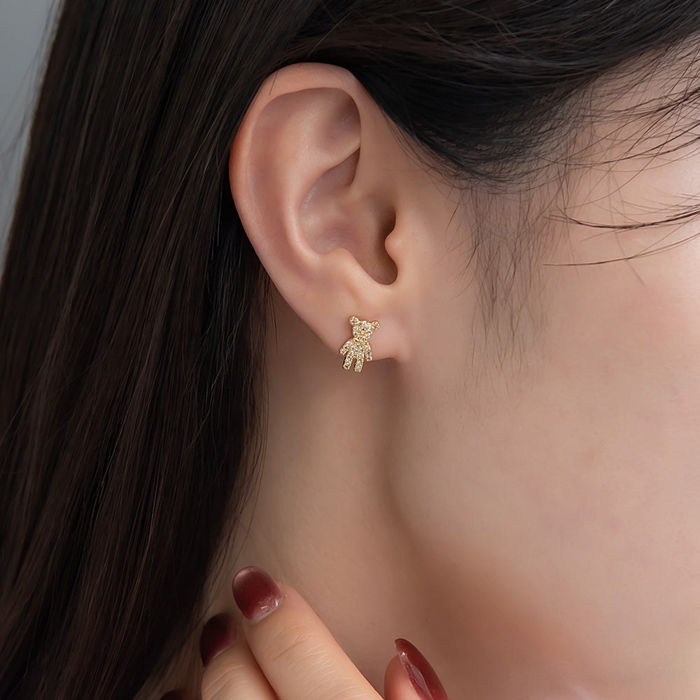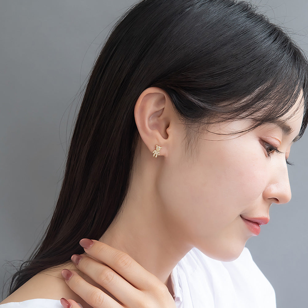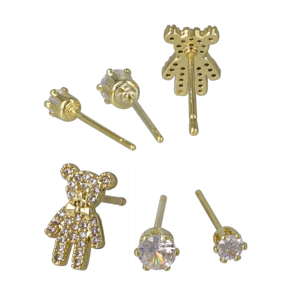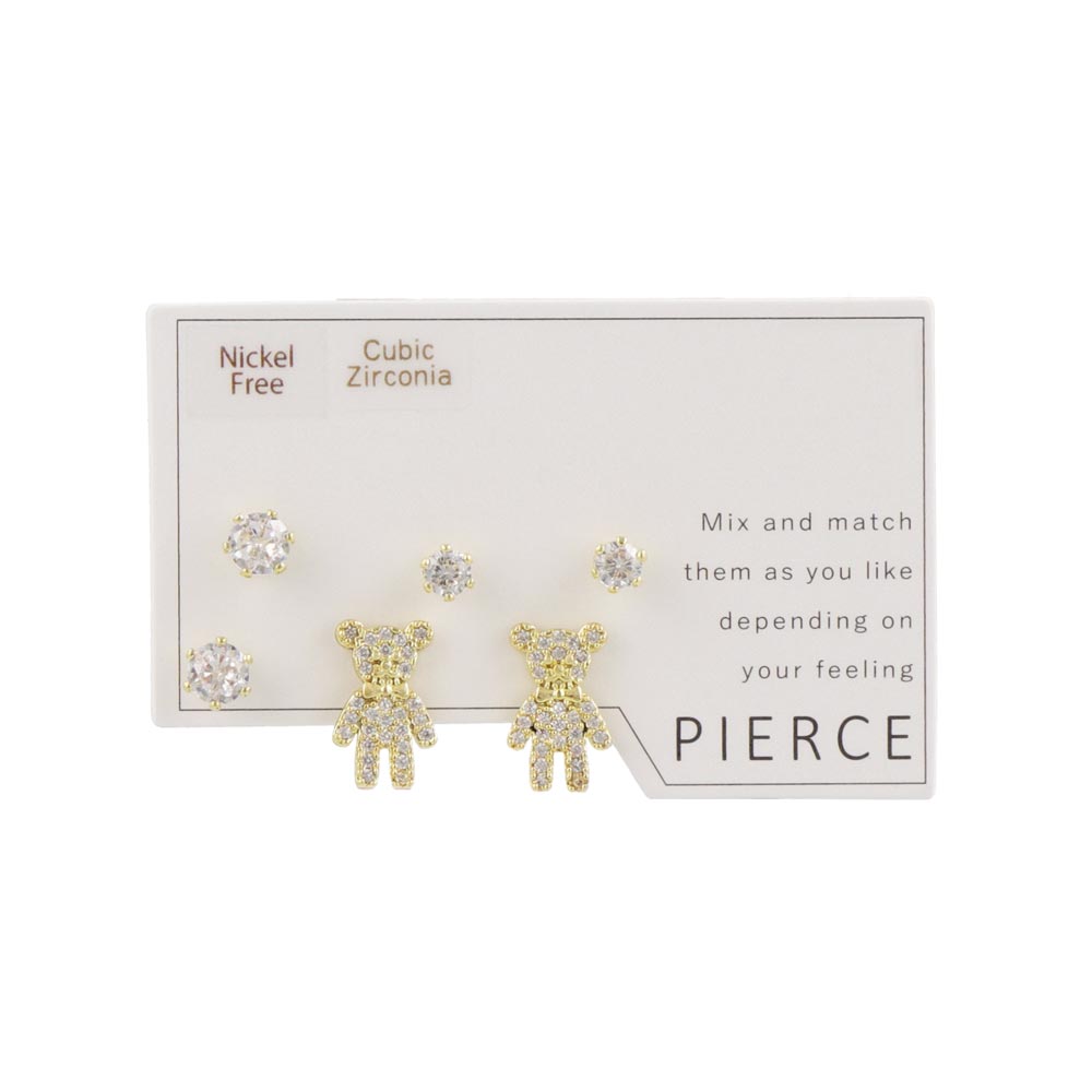 ピアス ニッケルフリー メタル キュービックジルコニア クマ 6個セット シルバー925ポスト スタッドピアス