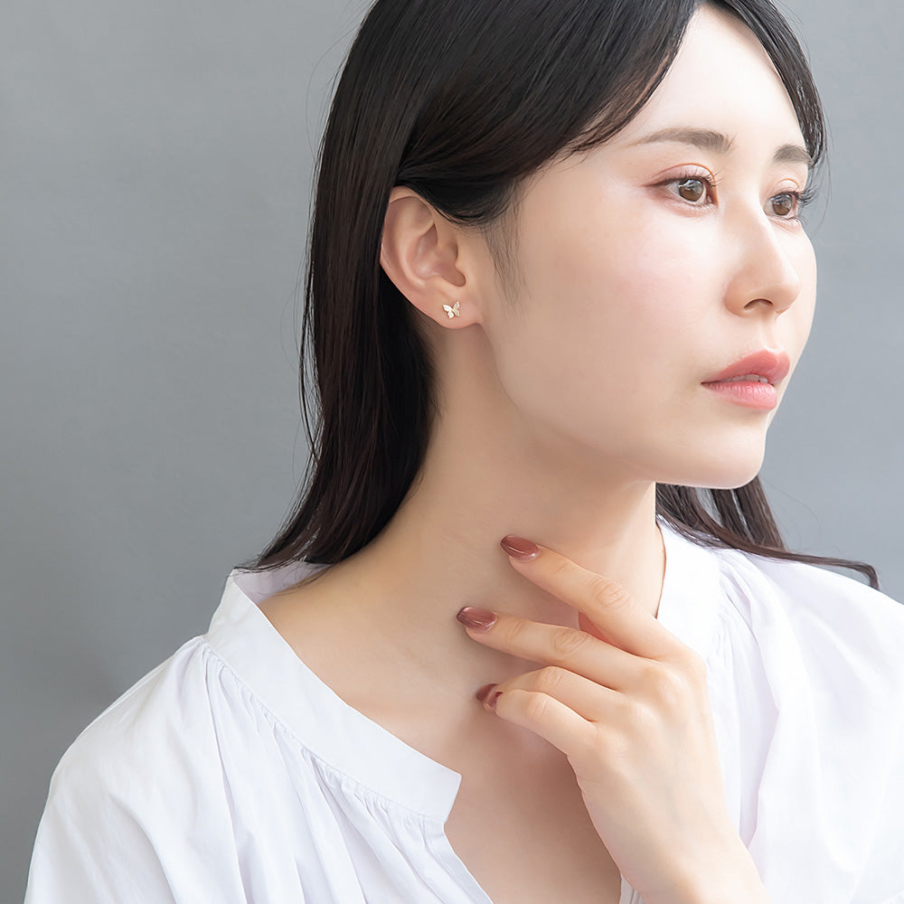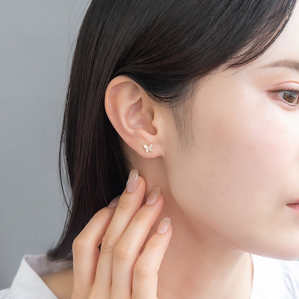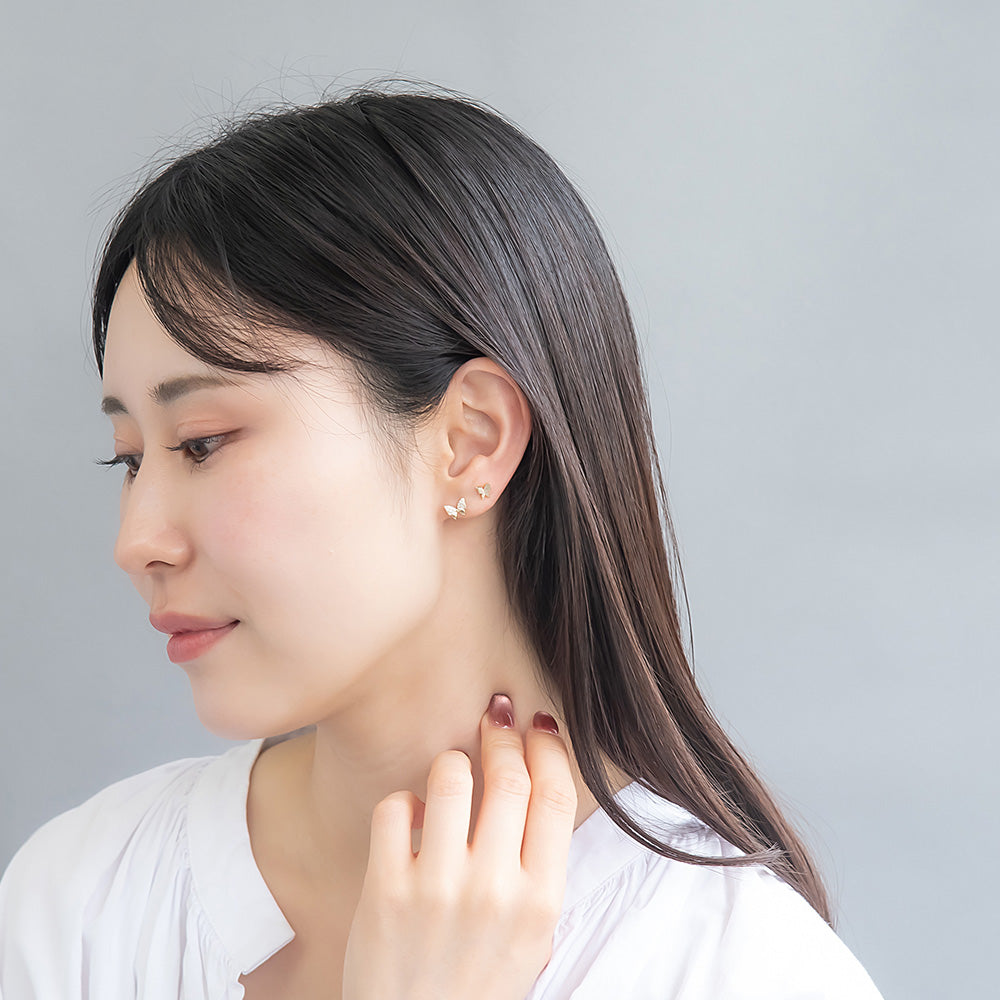 ピアス ニッケルフリー メタル キュービックジルコニア バタフライ 6個セット スタッドピアス