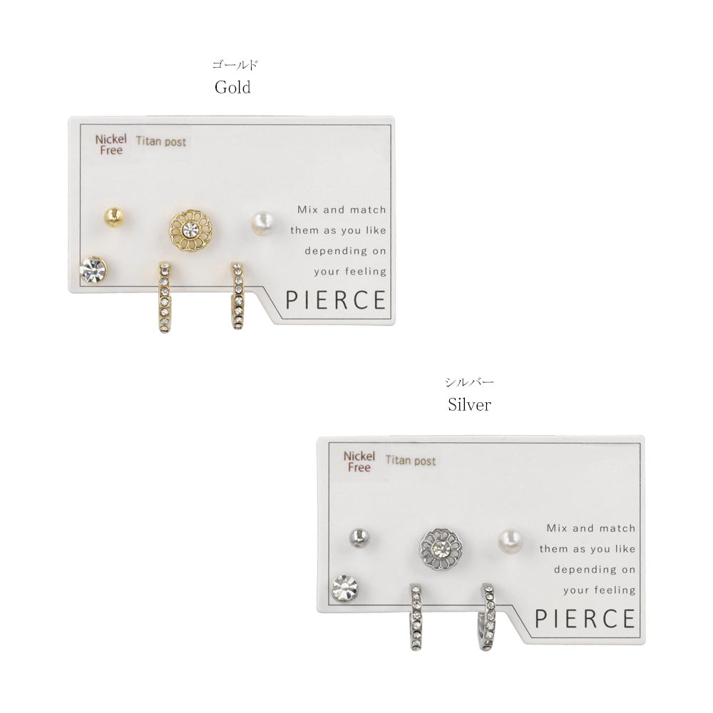 ピアス ニッケルフリー メタル C型 パール 釈迦玉ボール 6個セット チタンポスト スタッドピアス