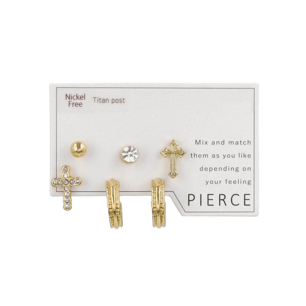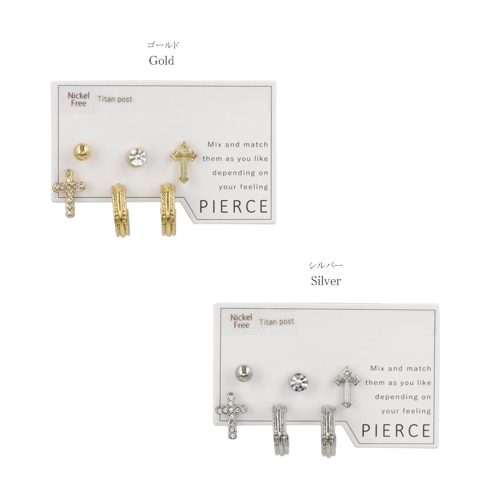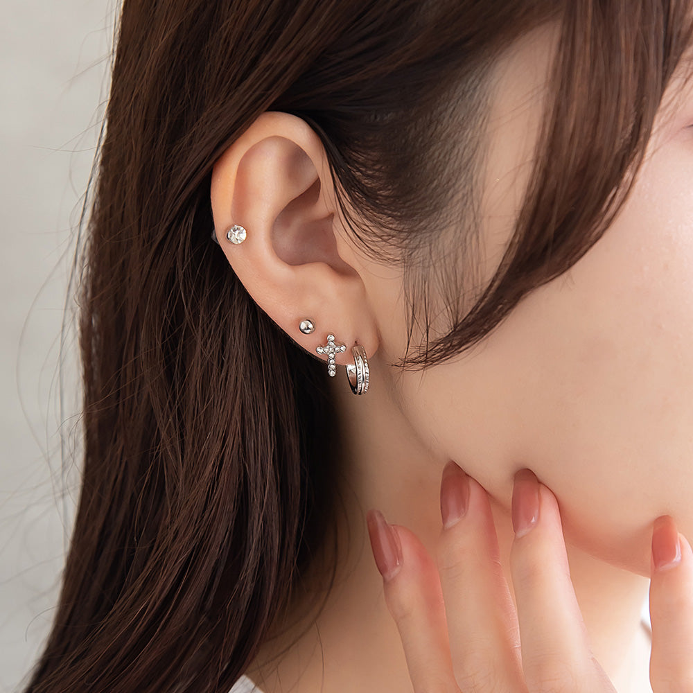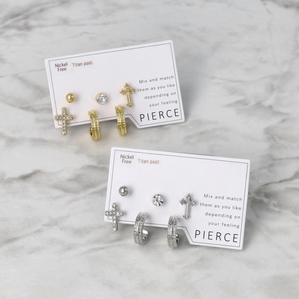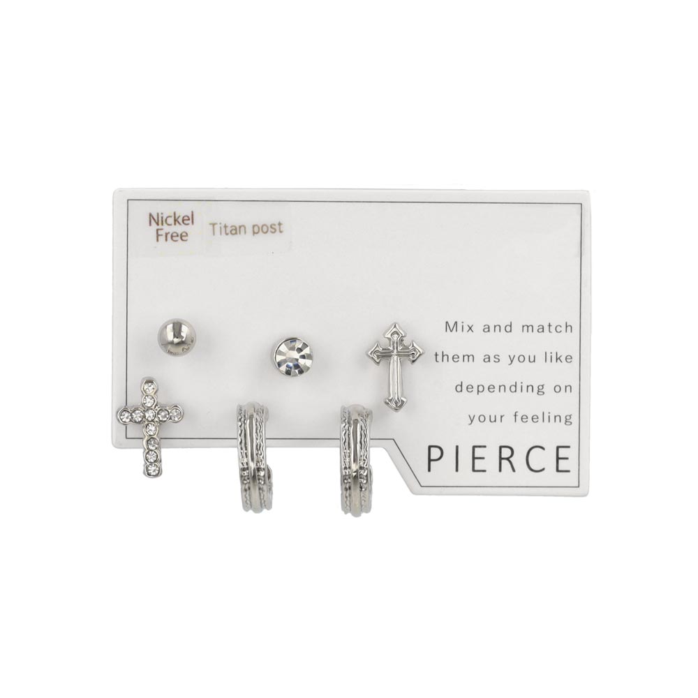 ピアス ニッケルフリー メタル C型 クロス 釈迦玉ボール 6個セット チタンポスト スタッドピアス