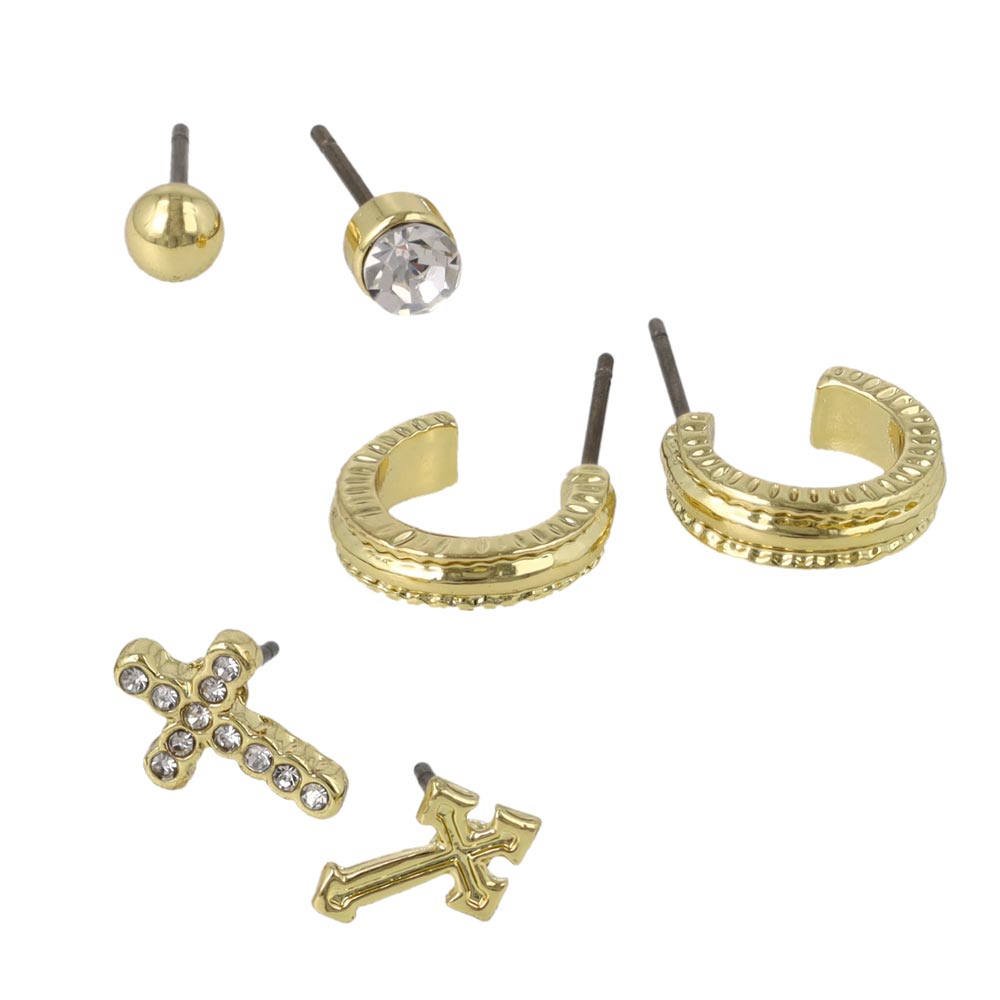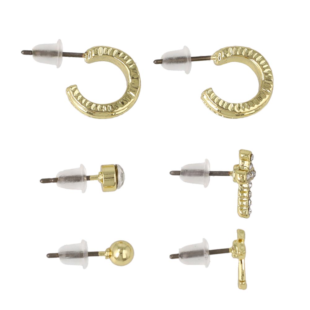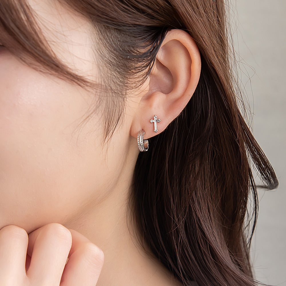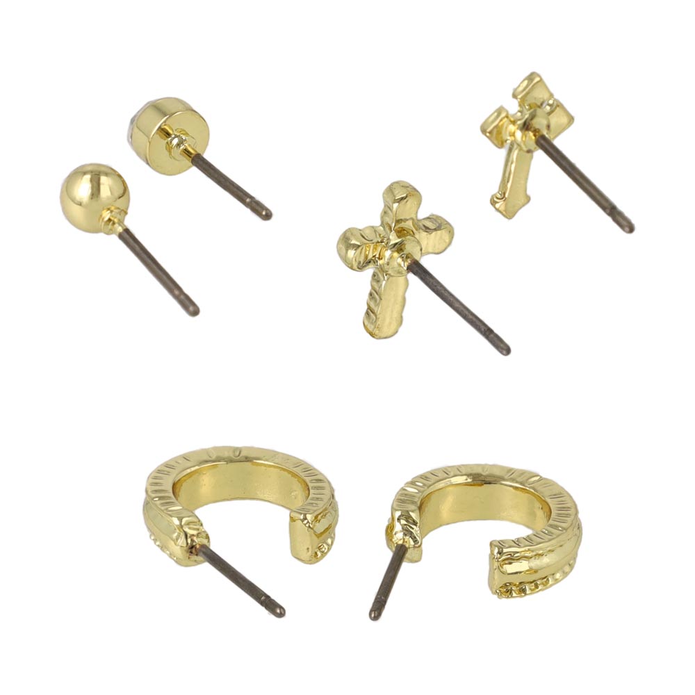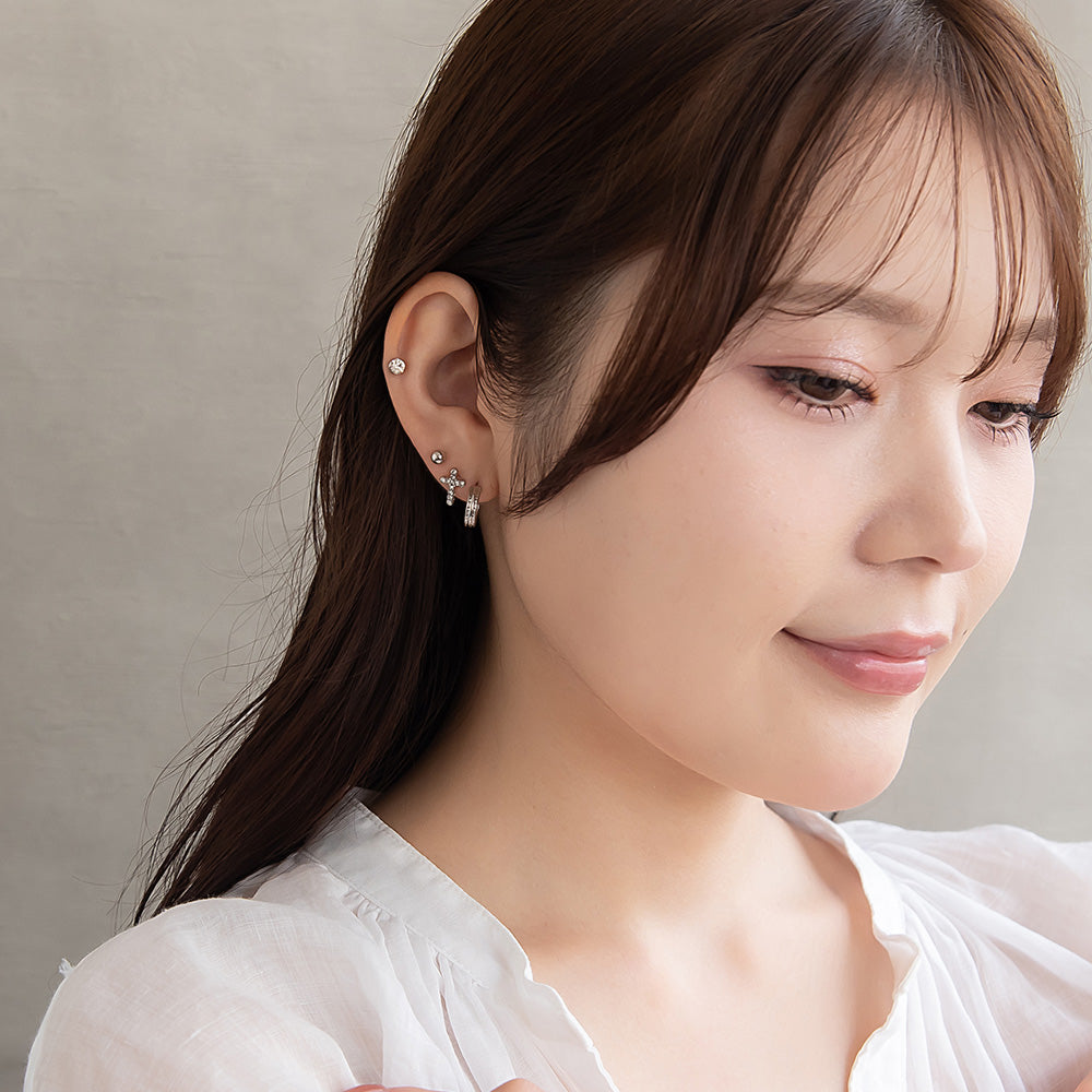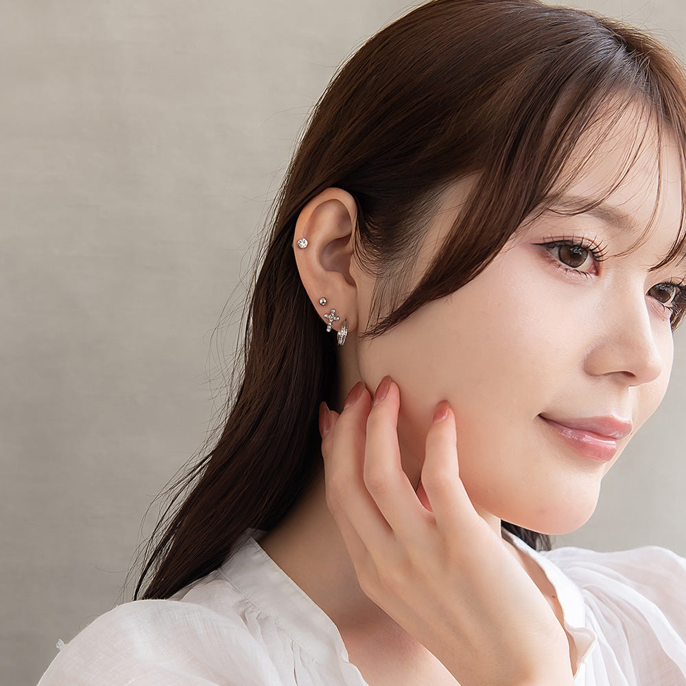 ピアス ニッケルフリー メタル C型 クロス 釈迦玉ボール 6個セット チタンポスト スタッドピアス