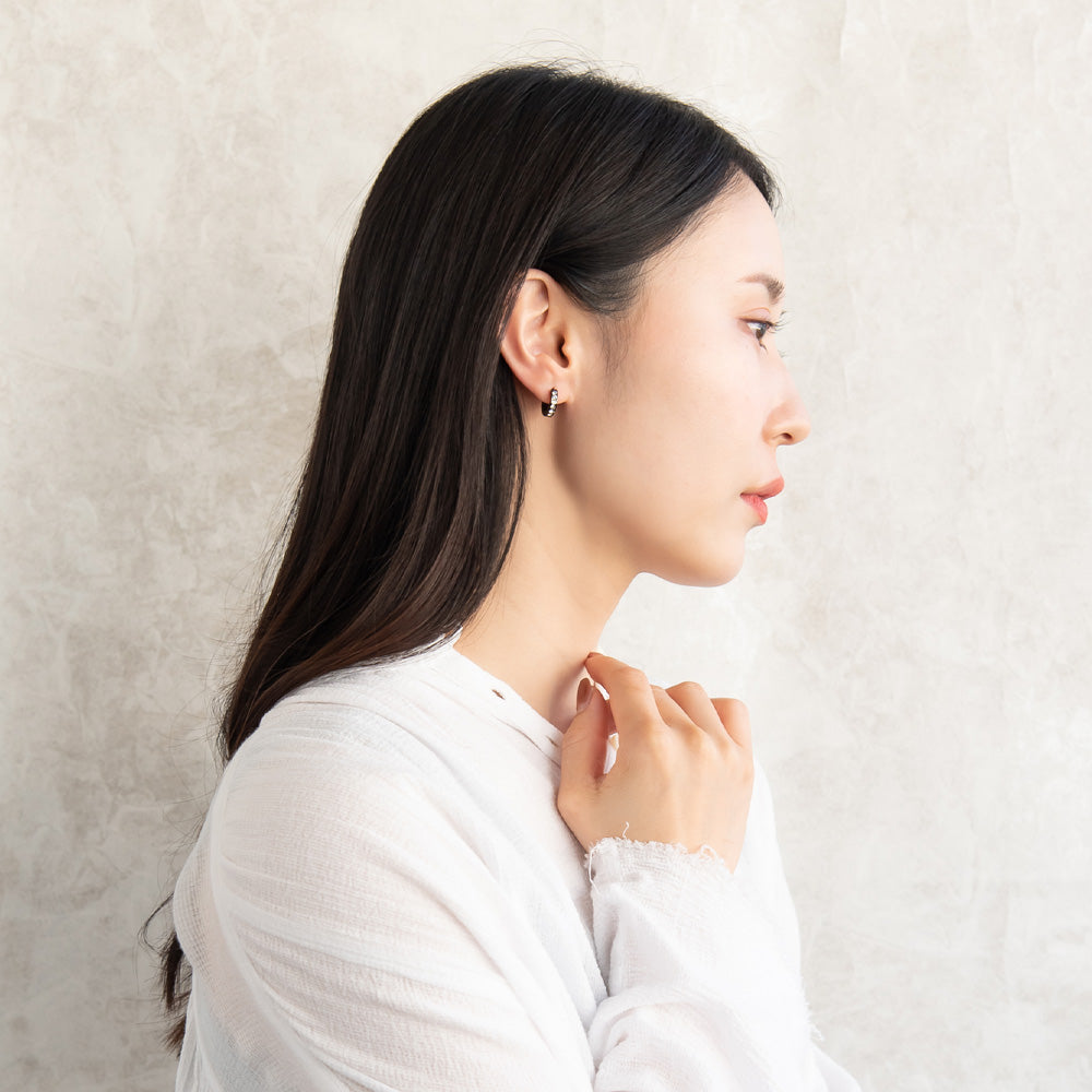 硬く傷がつきにくいステンレス製のアクセサリーです。サビや変色にも強い素材の為、なめらかな質感、輝きを長く保ちます。金属アレルギーの方にも安心してご使用いただけます。