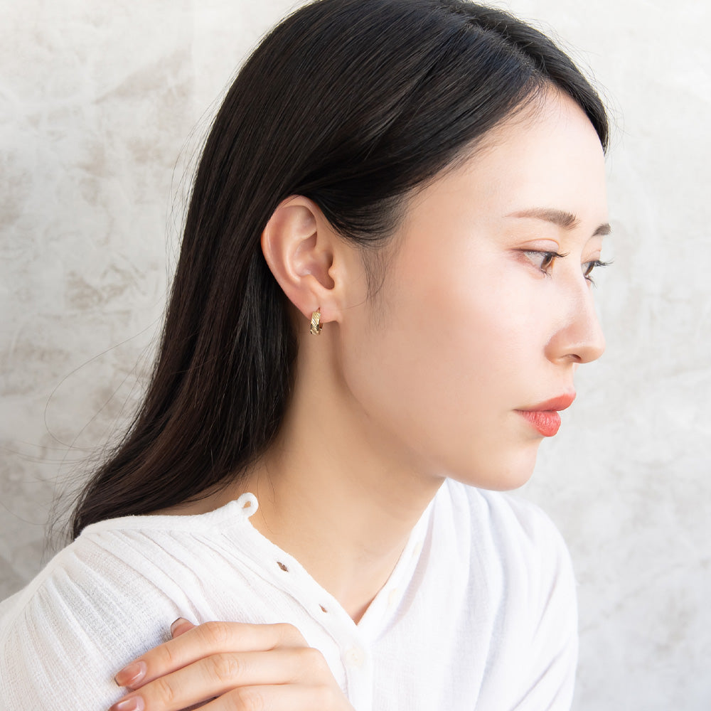 フープピアス/直径約13mm、幅約4mm、ヘキサゴン・ストーン約4mm、ボール約2mm