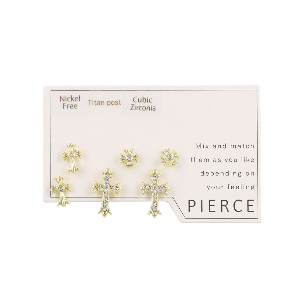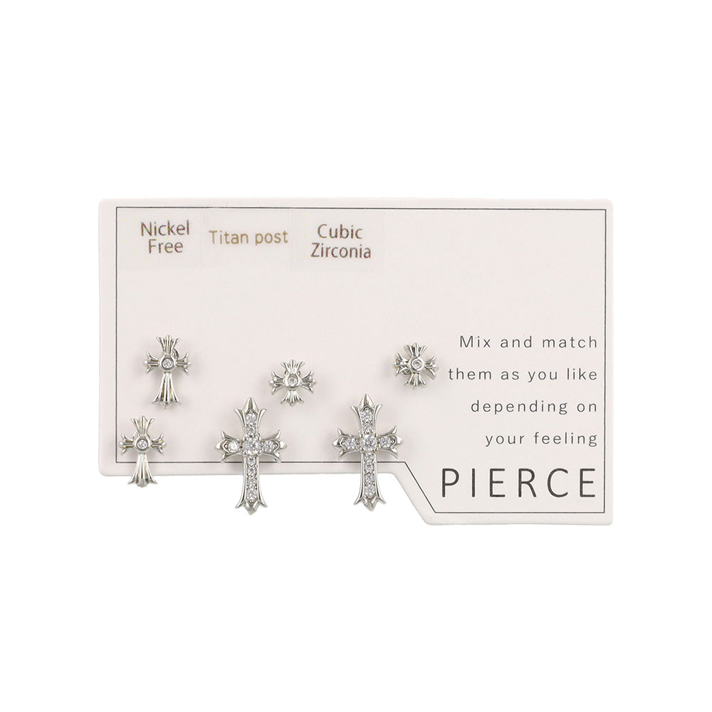 sp0256キュービックジルコニアを使用したクロスモチーフのセットピアス。気分に合わせて楽しめる6個セット。