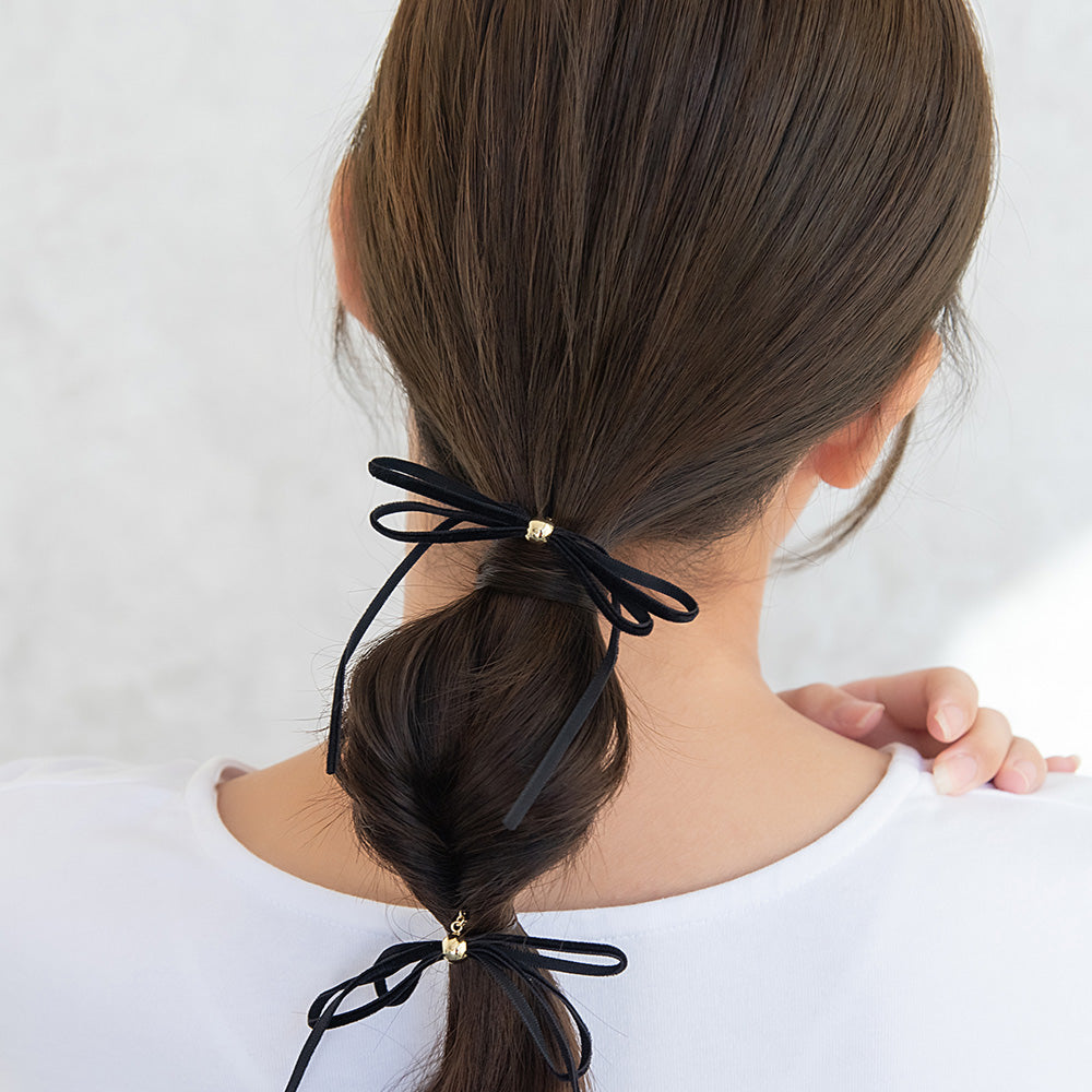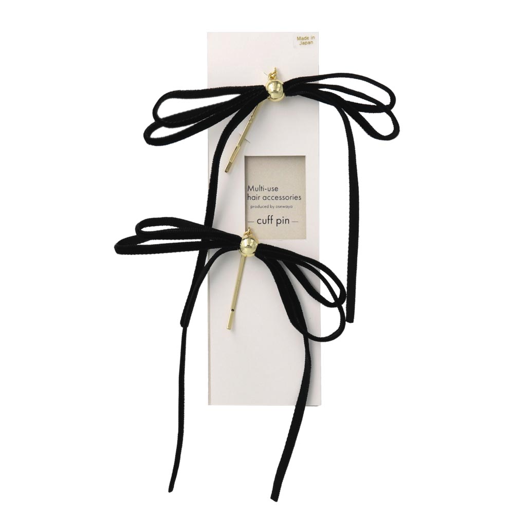 ゆれるシルエットが愛らしいリボンのヘアピン。落ち着きのあるベロアのブラックリボンで大人可愛い印象に。