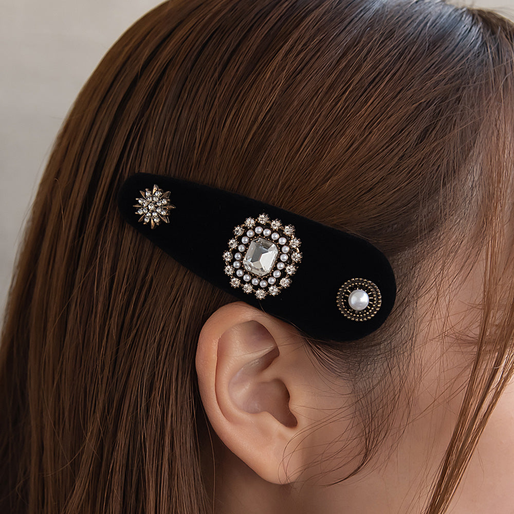 ヘアピン ベロア ガラス パール アンティーク調 スリーピン