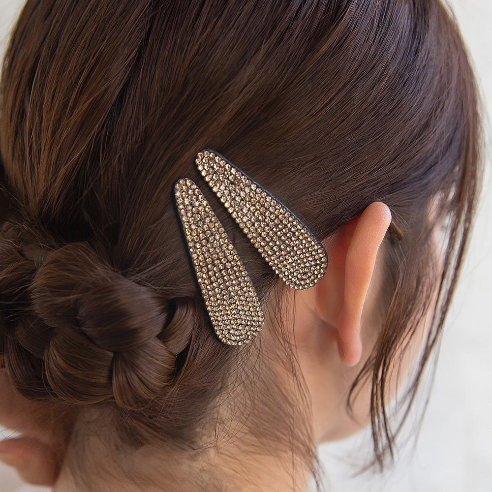st0399ラインストーンを敷き詰めたシンプルなヘアピン2個セット。丁度いいサイズ感でアレンジにもピッタリ◎